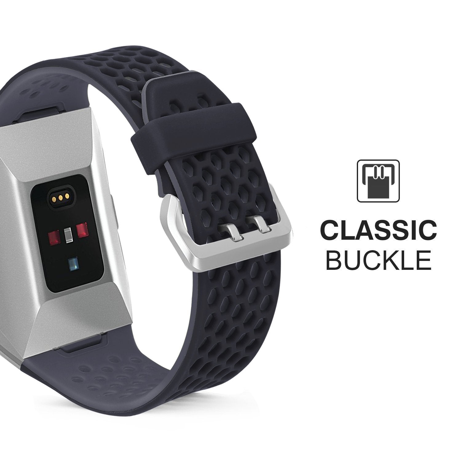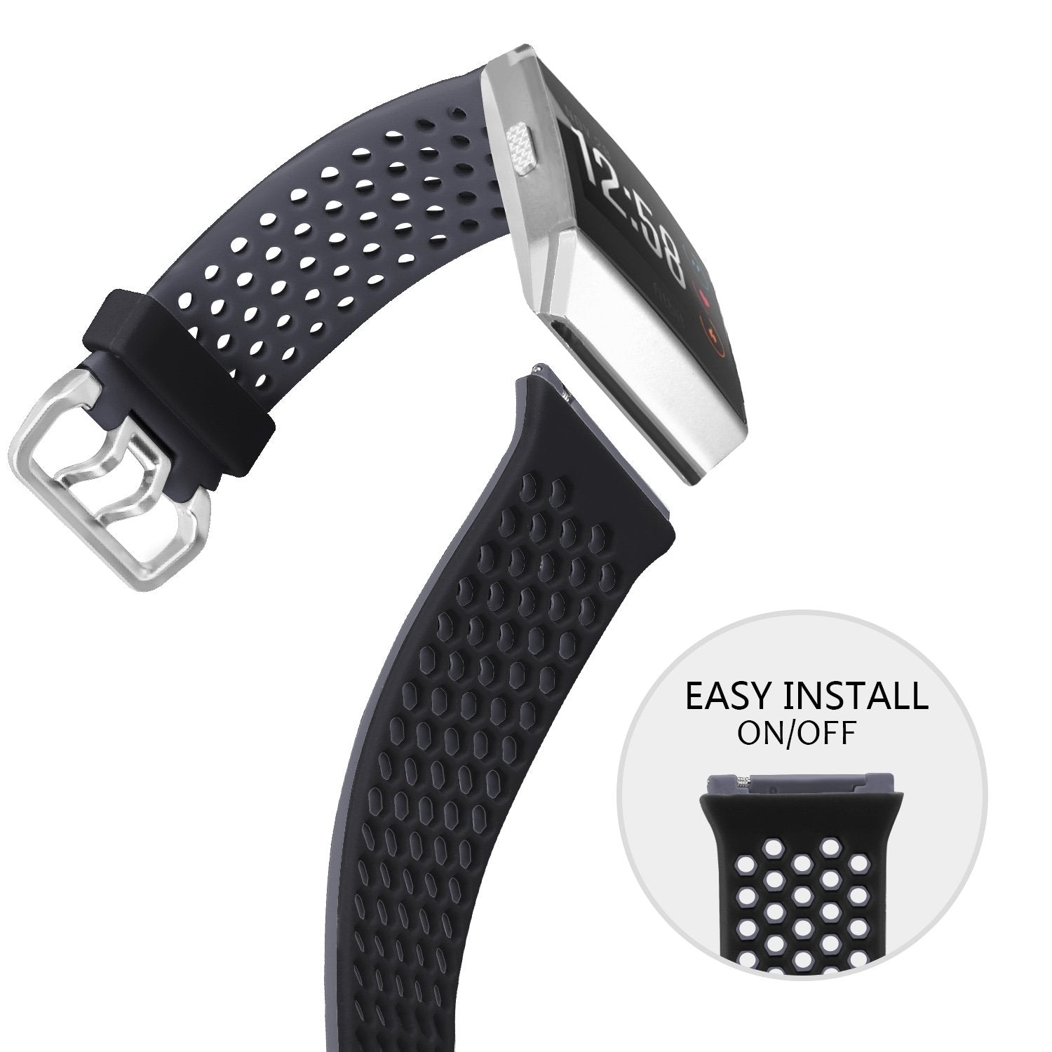 - Original Smartwatch Bands – Compatible with Fitbit Ionic Bands Men Women, Soft Sport Silicone Breathable Replacement Wristband Compatible with Fitbit Ionic Smart Watch with Buckle [Black-Gray] by SKYLET