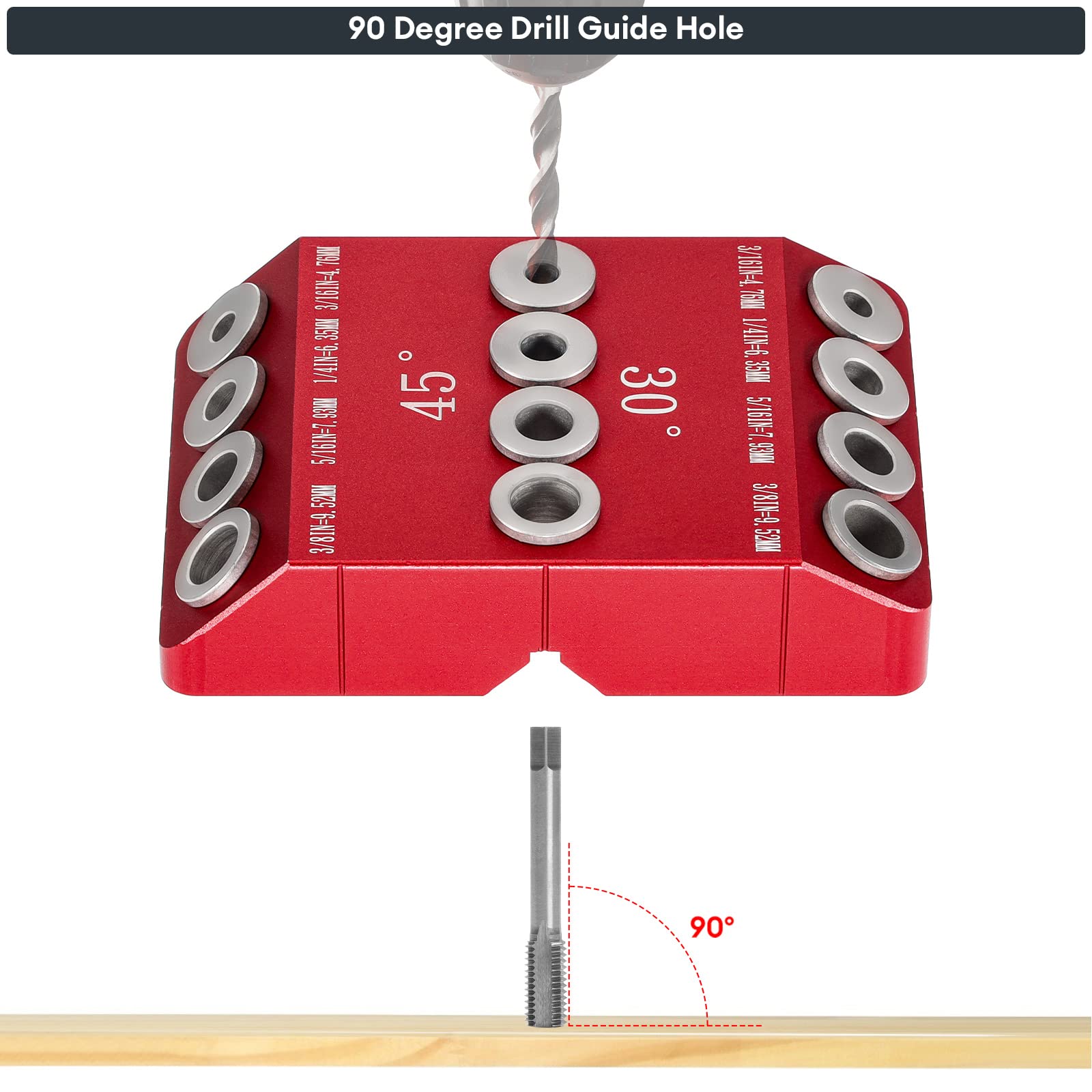 - HIGH-QUALITY MATERIALS: This drill guide for cable railing is made of high-quality industrial grade aluminum alloy, hard and lightweight, easy to use and carry. Anodized red surface, keep excellent finish, corrosion resistance and durability. The guide holes of this drill guide are inlaid with steel drill sleeves, so there is no need to worry about it being worn during drilling, causing the guide holes to become larger and lose accuracy.