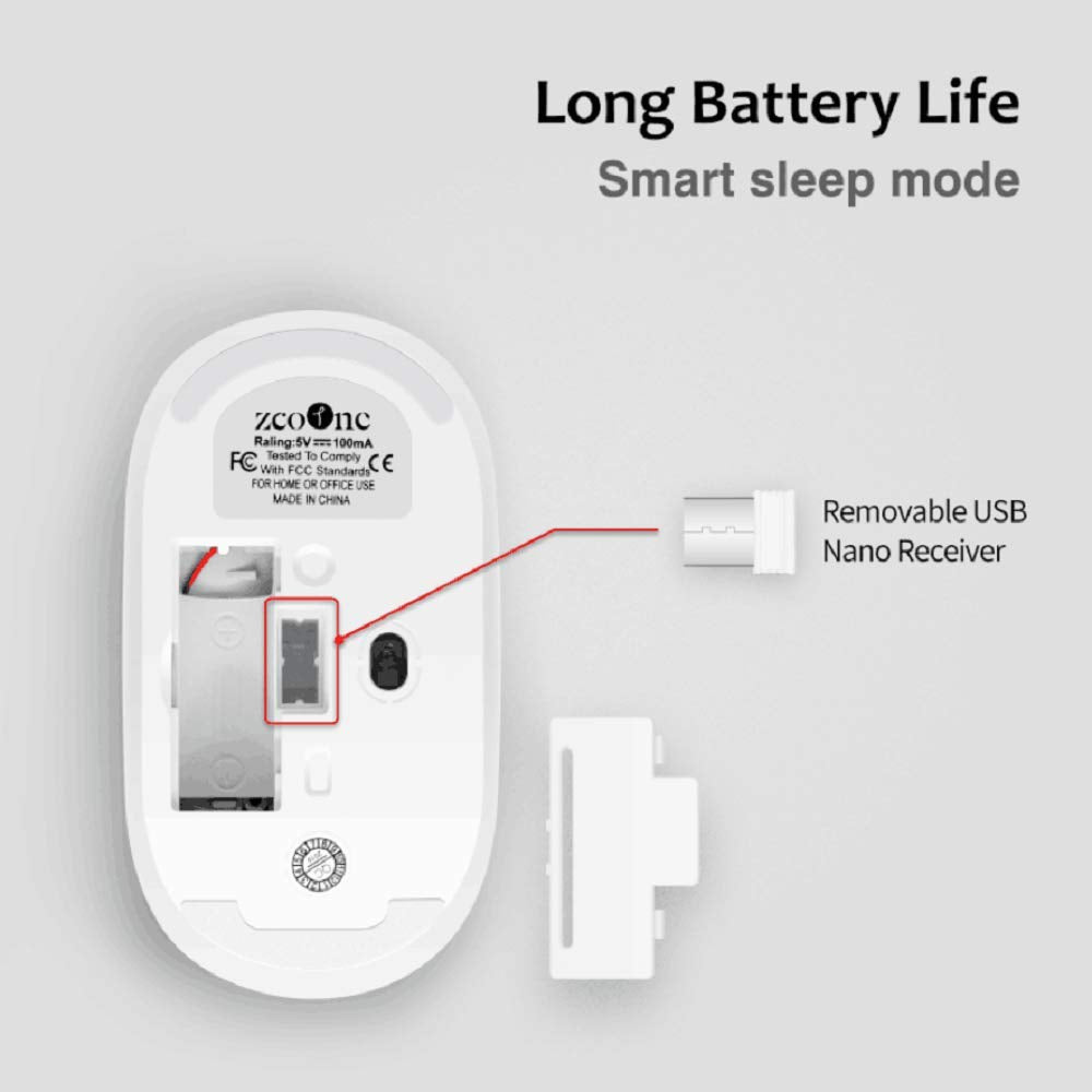 - Noiseless Click- This wireless computer mouse makes quiet and silent clicks, you can concentrate on working without disturbing others beside you. (USB receiver is stored under the back of mouse)