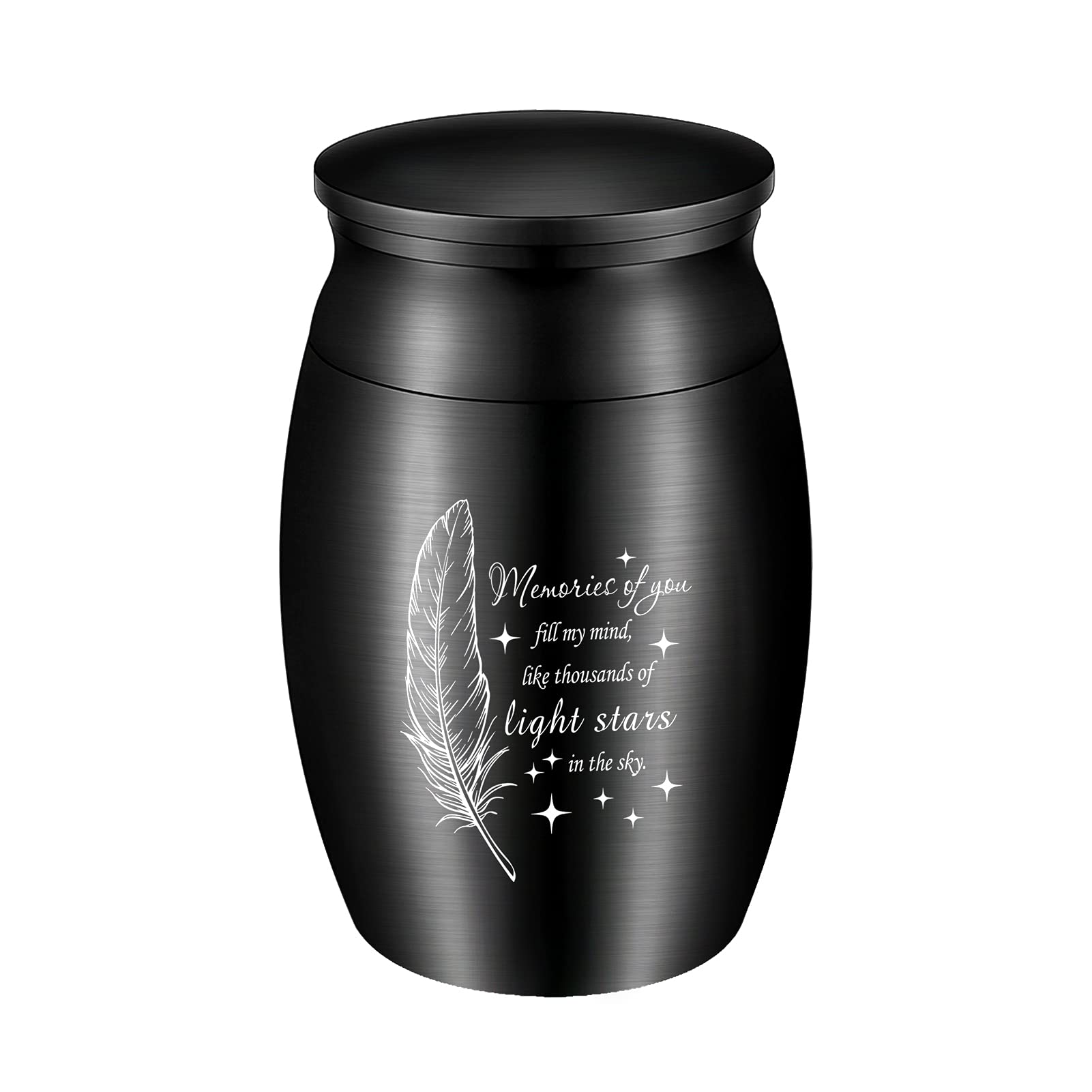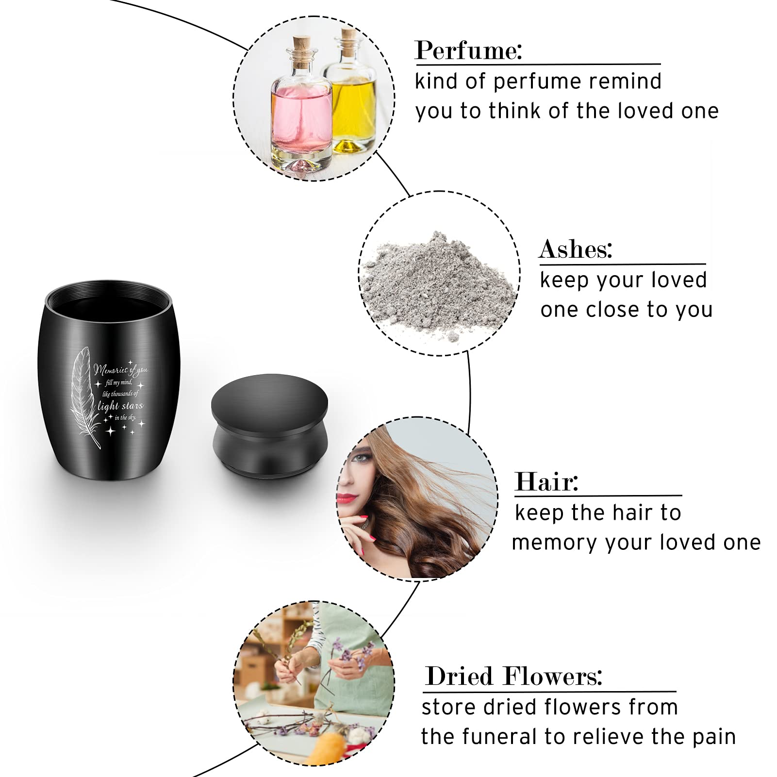 - High-Quality This small urn is made of aluminum, light, and sturdy. This mini ash urn will never rust, corrode, fade, or allergy. Just like love and memories could stand the test of time, they could accompany you always.