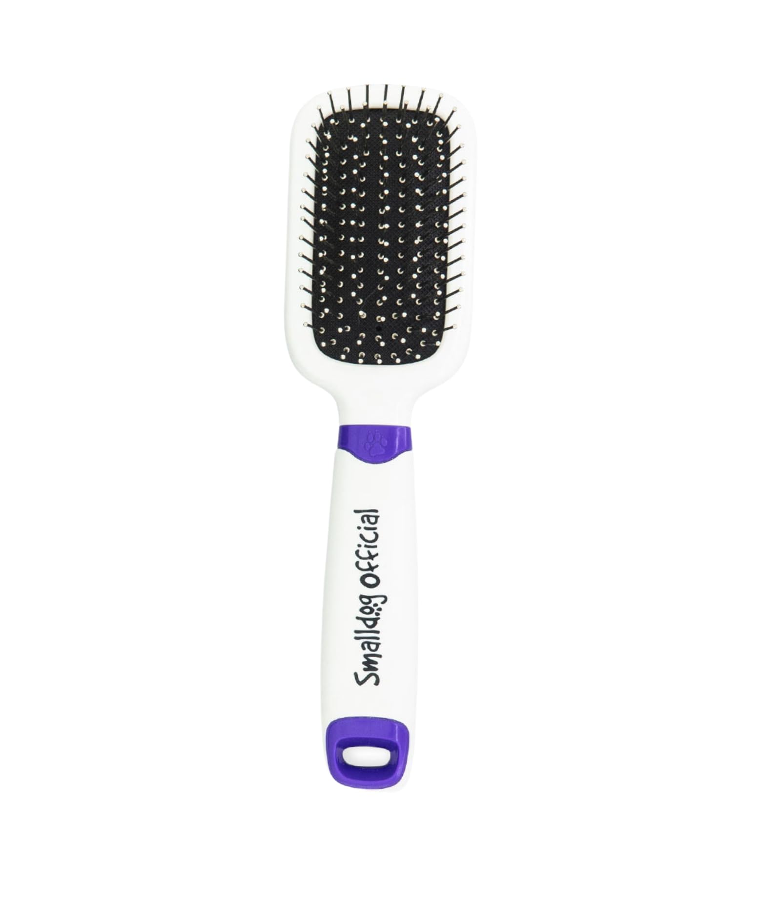 - The handle and brush head are white, with accents of purple. The bristle pad is black. Smalldog Official Logo is black.