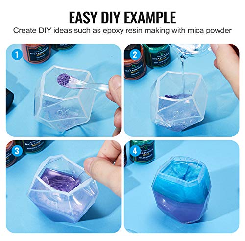 - LARGE VARIETY of UNIQUE COLORS: You'll get 36 vibrant unique colors with 6 MIRAGE COLORS and 30 metallic mica powder shades! Each color comes in a (0.35 oz / 10 g) bottle. Meet all the needs of creating bright beautiful crafts you desire!