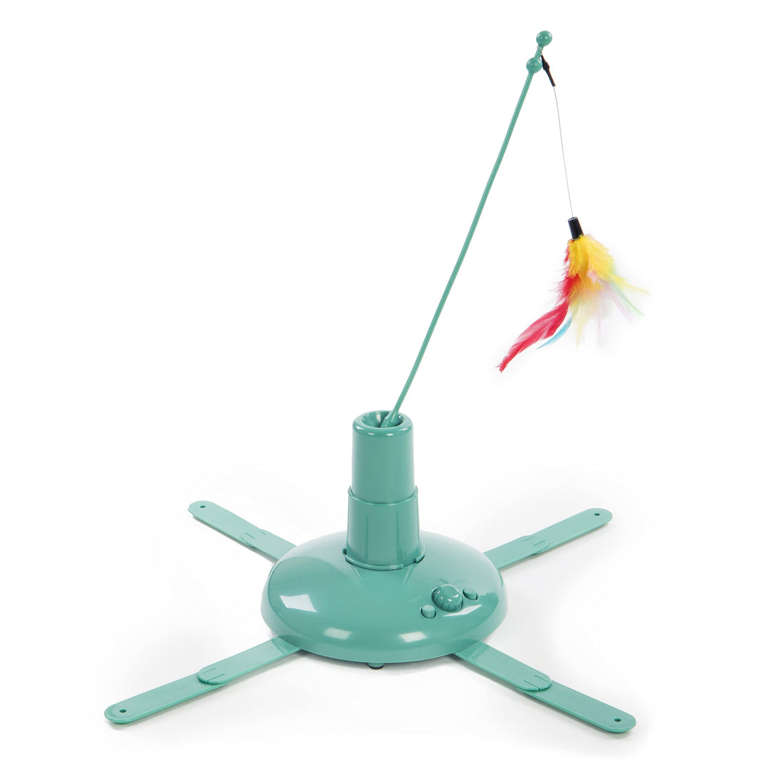 - ELECTRONIC MOTION: Loco Motion features a springy wand toy that moves erratically, swinging and swaying the dangling feather toy to tease and drive your cat crazy; the toy is also designed with speed controls that allows you to customize the wand's movements to better cater to your cat's preferred play style