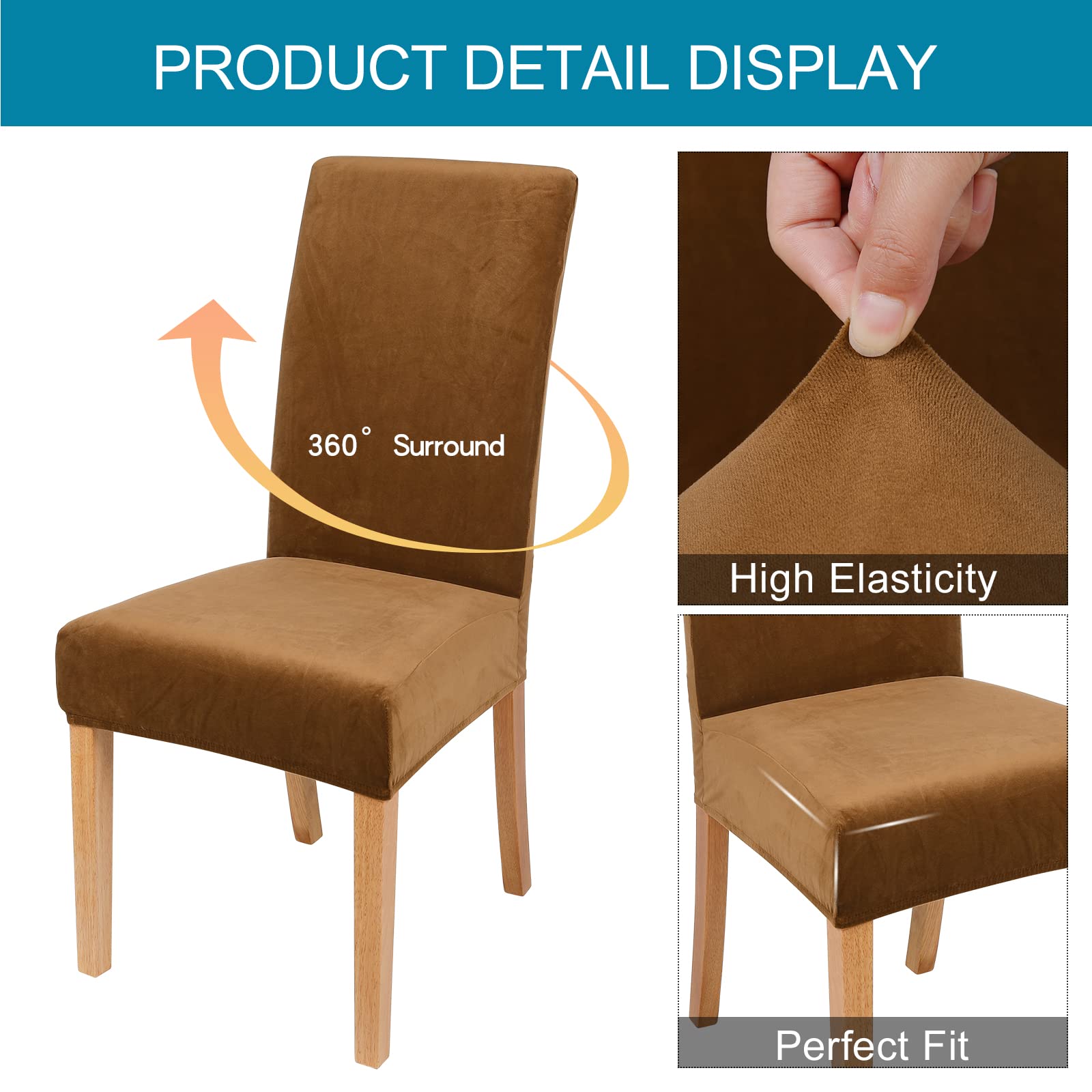 - [Chair Protector] Velvet chair covers for dining chairs dress up and create a new look to your old dining room chairs. Protect furniture chair from stain, dust, daily wears and scratch. Suitable for families with kids and pets
