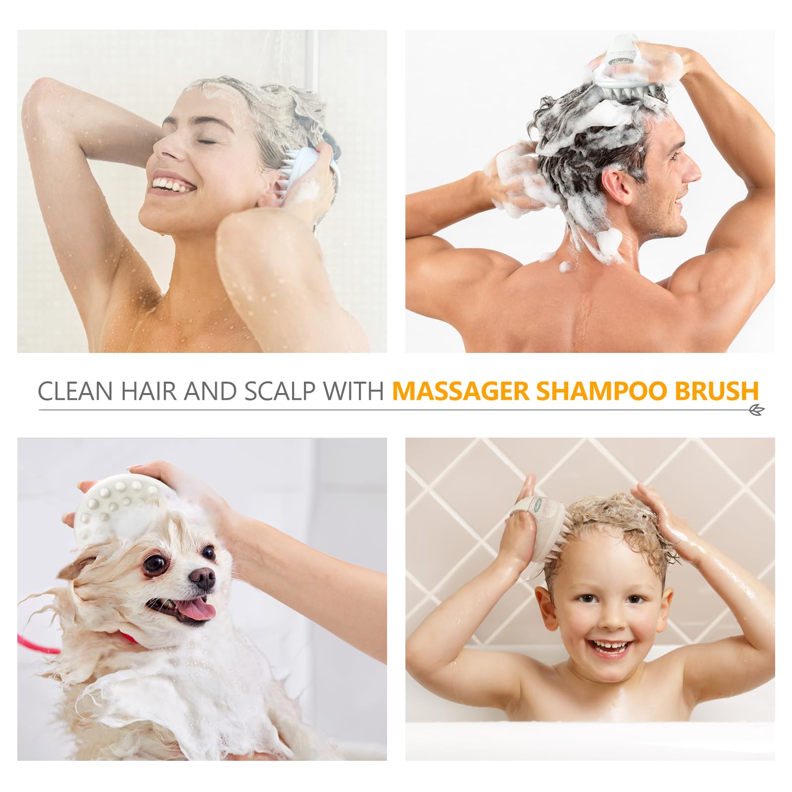 - 3-Perfect for All Hair Types--Our shampoo hair brush is suitable for women, men, kids and pets, especially perfect for girls with thick, oil, curly and long hair. This scalp massager hair brush won't damage your nails when washing hair, ideal for people with long nails/manicure lover. Pets will also enjoy this shower hair brush for bathing or hair removal.