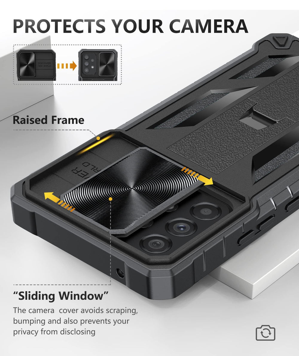- Built-in Kickstand: This galaxy a53 5g phone case with hidden stand works perfectly both in vertical and horizontal stable stand angles.Convenient for reading,watching movies,playing games and face-time with your friends.Provides hands-free portrait and landscape viewing angles