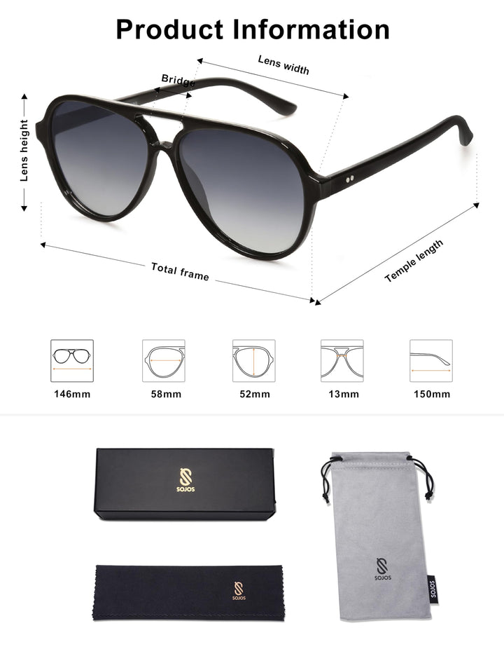 - PRODUCT MATERIALS - These SojoS classic aviator sunglasses are made of polycarbonate frames, UV400 lenses, solid metal hinges, all the details ensuring you a long time using. They are suitable for both men and women and suitable for any climate and weather conditions.