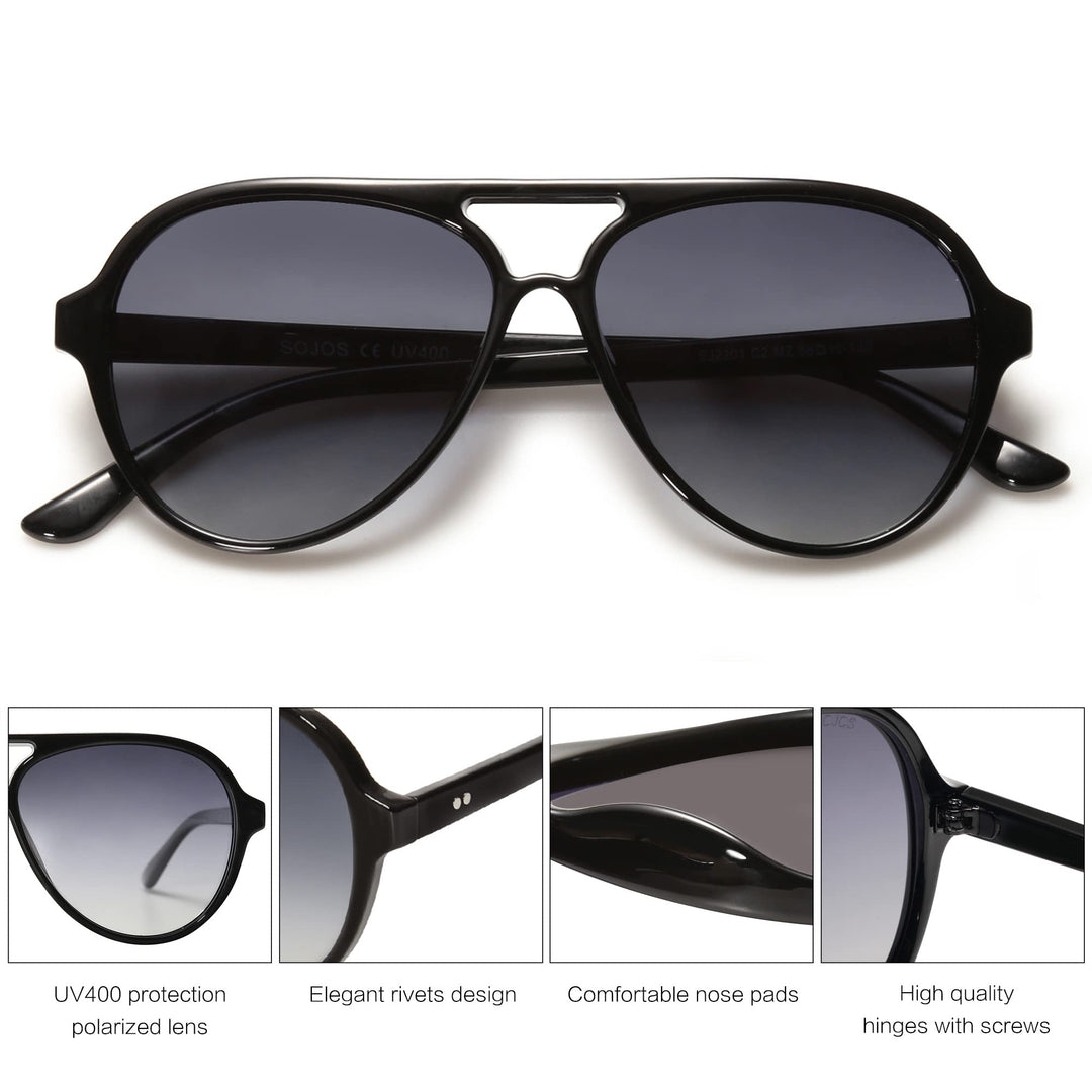 - Original Sunglasses – Classic Polarized Aviator Sunglasses Womens Mens Retro Double Bridge Aviators SJ2201, Black/Grey by SOJOS