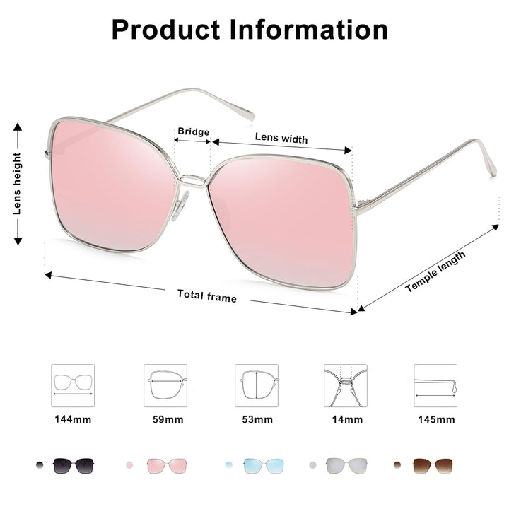 - PRODUCT MATERIALS - These large oversized square frame sunglasses are made of solid metal frames, UV400 protection lenses, strong metal hinges, all the details ensuring you a long time using.
