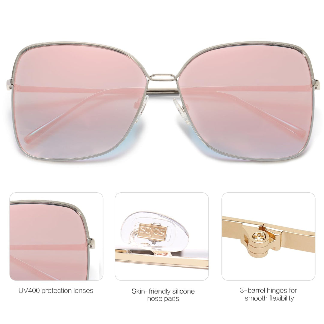 - Original Sunglasses – Classic Trendy Square Oversized Sunglasses Womens Mens UV400 Big Large Designer Shades SJ1082, Silver/Pink by SOJOS