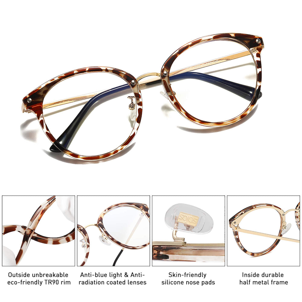 - ANTI-BLUE LIGHT & ANTI-RADIATION COATED LENSES - The anti-blue light&anti-radiation coated lenses are best used for long hours of computer use to reduce symptoms of eyestrain and maintain natural sleep patterns. The original non-prescription lenses can be replaced with progressive lenses at any store.
