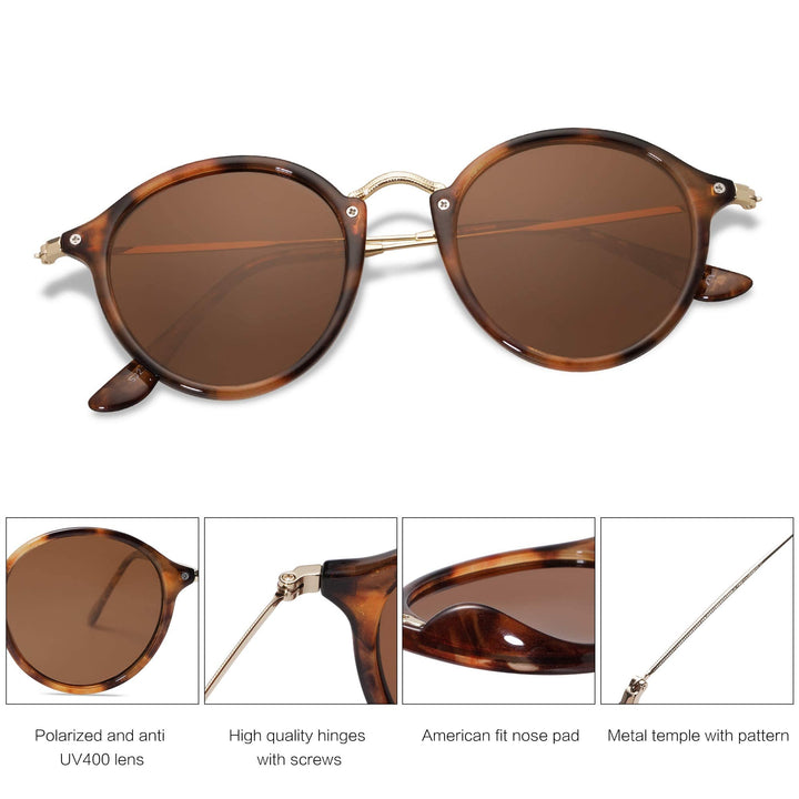 Discover the authentic Round Polarized Sunglasses for Women Men Classic Vintage Retro Style SJ2148 with Tortoise Frame/Brown Lens by SOJOS, part of our Sunglasses collection. Imported directly from the USA and sourced from trusted suppliers, this product is 100% authentic and delivered anywhere in India at the best price.