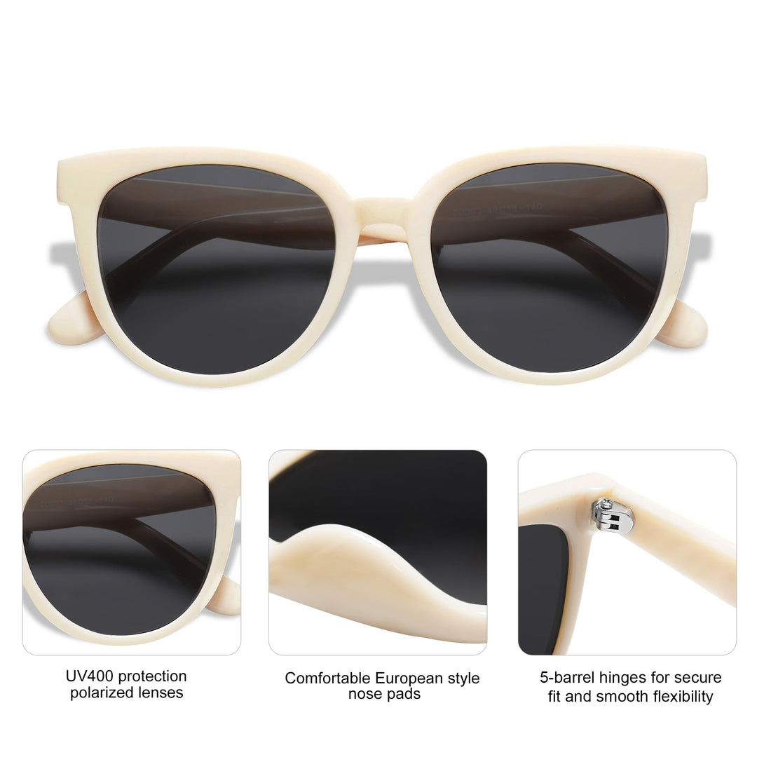 - Original Sunglasses – Trendy Cat Eye Round Polarized Sunglasses for Women Fashion UV Protection Sunnies Sunglasses SJ2175, Beige Frame/Grey Lens by SOJOS