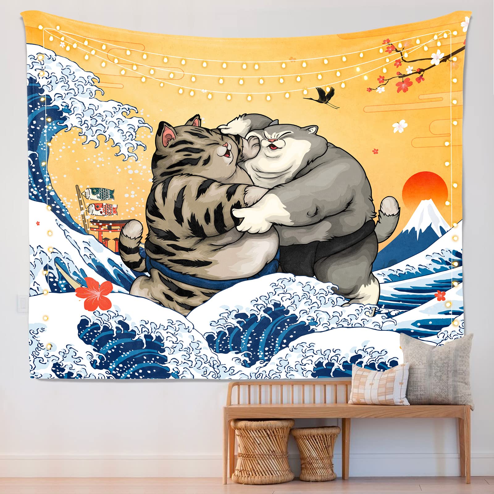 - Original Tapestries – Japanese Cat Tapestry Sunset Wave Tapestry Mount Fuji Nature Tapestry, for Great Wave Tapestry for Bedroom Living Room Dorm (Yellow, 50x60 Inches) by Sokurdeg