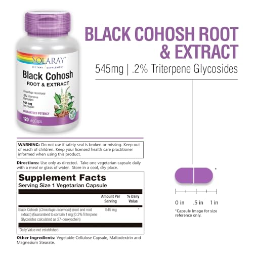 - Original Black Cohosh – Black Cohosh Root & Extract 545mg, Womens Health & Menopause Support Supplement, Non-GMO, 120 VegCaps by SOLARAY
