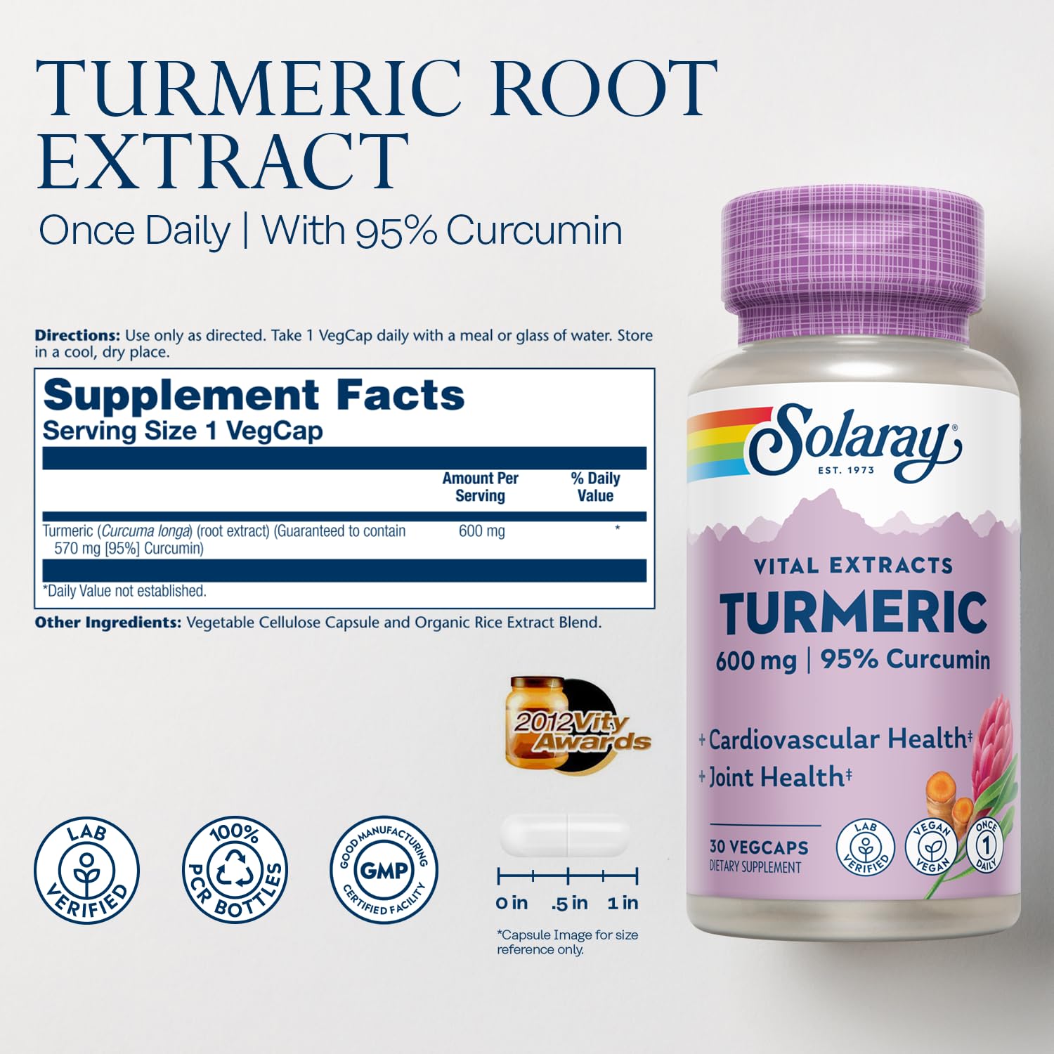 - Original Turmeric – Turmeric Root Extract 570 mg - Turmeric Curcumin Capsules - with 95% Curcumin - Heart Health and Joint Health Support - Lab Verified, 60-Day Guarantee - 60 Servings, 60 VegCaps (30 CT) by SOLARAY