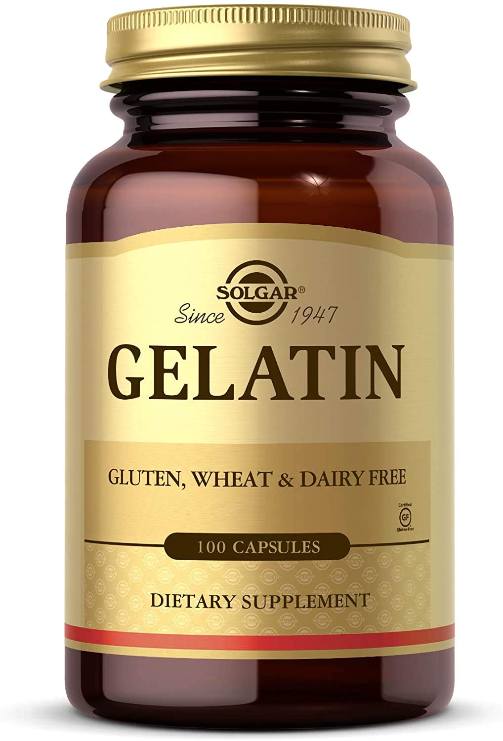 - Original Gelatin – Solgar Gelatin 1680 mg, 100 Capsules - Natural Gelatin - Supports Bone, Joint & Skin Health - Gluten Free, Dairy Free - 33 Servings by SOLGAR