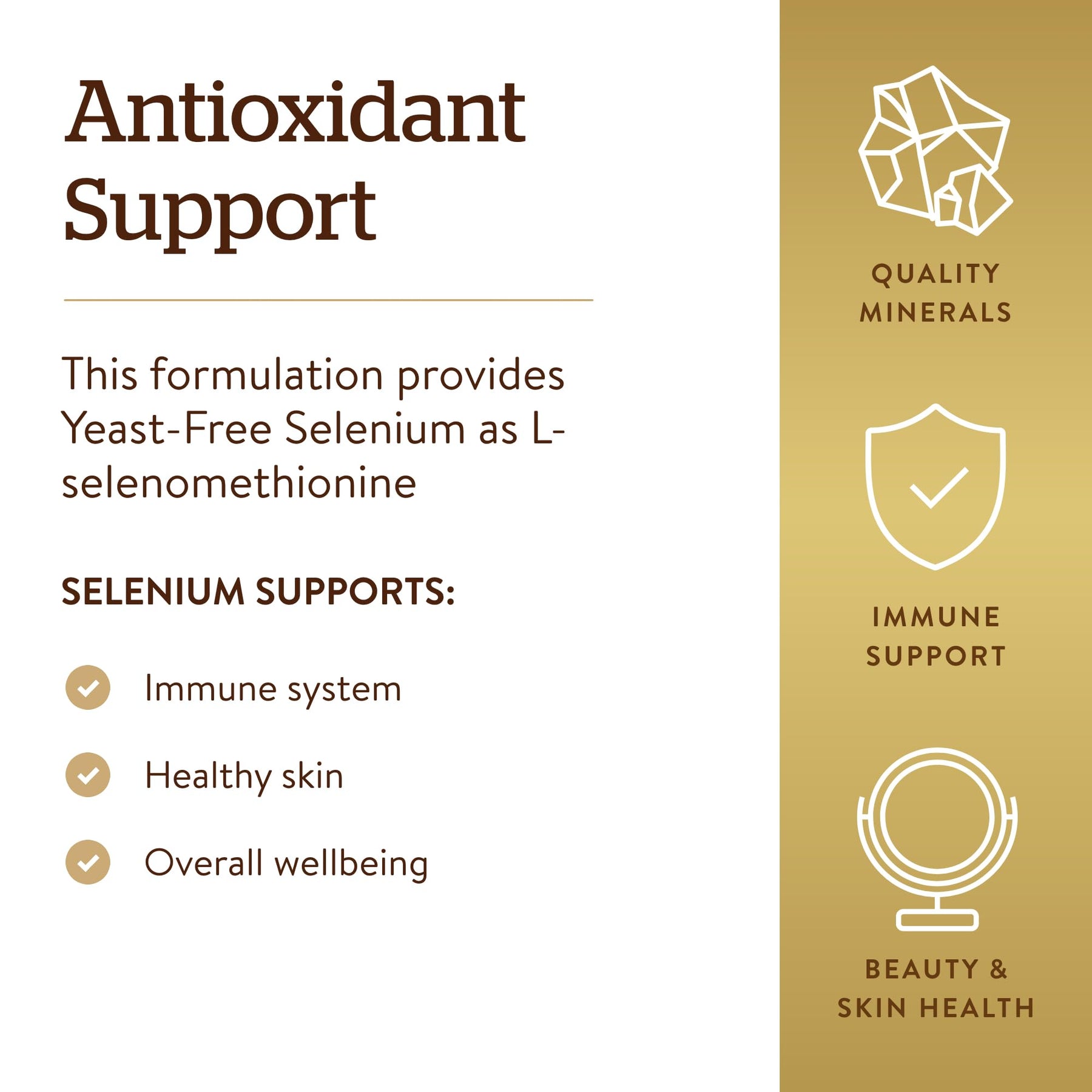 - Original Selenium – Solgar Yeast-Free Selenium 200 mcg, 250 Tablets - Supports Antioxidant & Immune System Health - Non-GMO, Vegan, Gluten Free, Dairy Free, Kosher - 250 Servings by SOLGAR