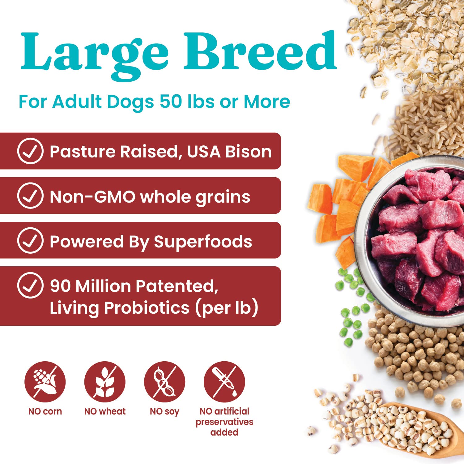 - HIGH PROTEIN WITH REAL BISON: This healthy dog food contains lean, protein-rich bison as the first ingredient to maintain muscle health for your large breed dog