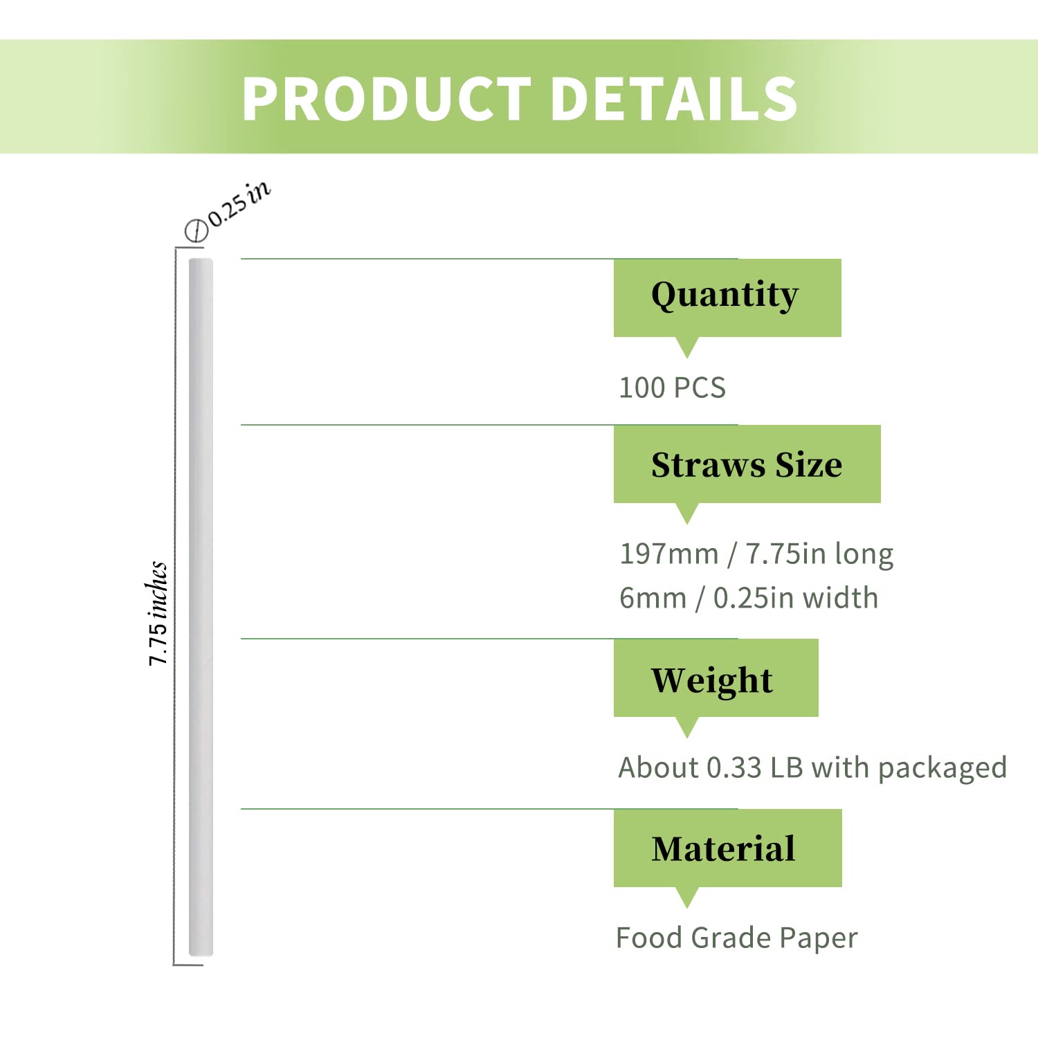 - Global Standard Size - 6mm/0.24inch Diameter, 197mm/7.75inch Length, 100pcs per pack drinking paper straw, Multi usage for Household Supplies, Health Care, Wellness, Personal Care, Daily Living Drinking Straws, Wedding Ceremony Accessories