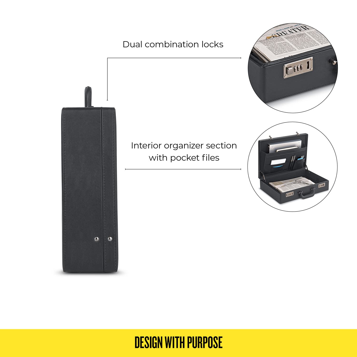 - Black Attaché Case: This classic black briefcase has a large capacity main compartment, an interior organizer section, a file pocket with velcro closure, and dual combination locks to keep your essentials secure