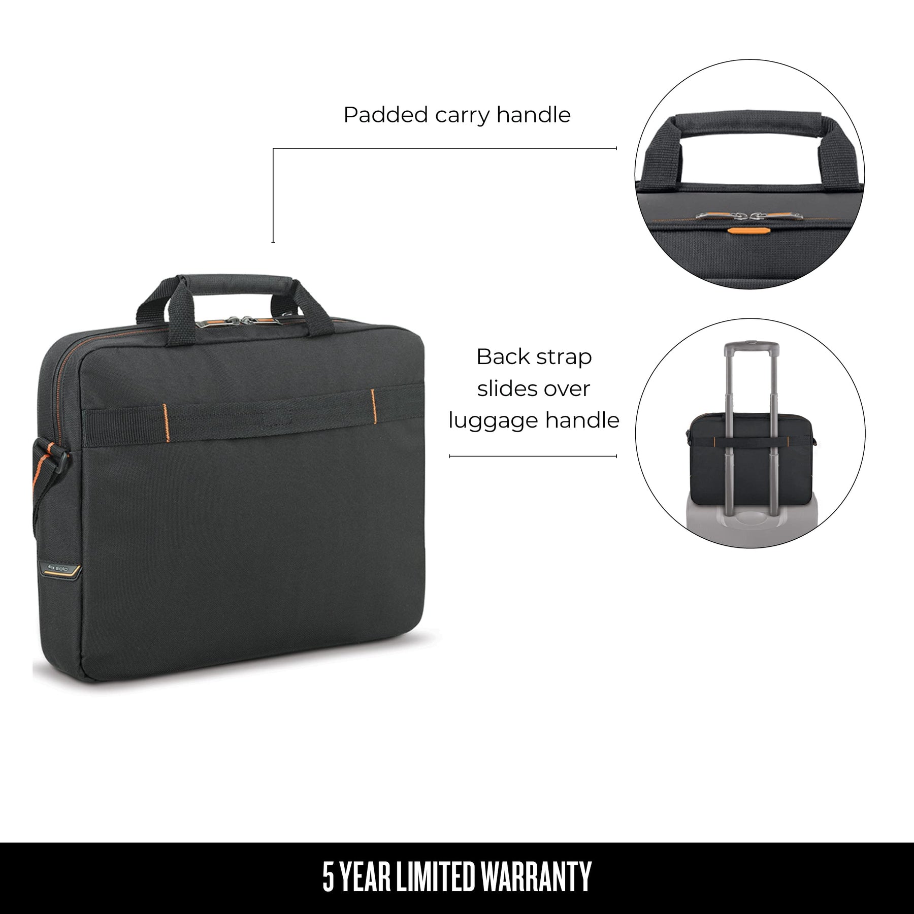 - Work And Travel: This laptop bag has an adjustable strap for easy carrying. The handy back strap slides over the luggage handle of your rolling carrying on or suitcase. Great for business travel and commuting