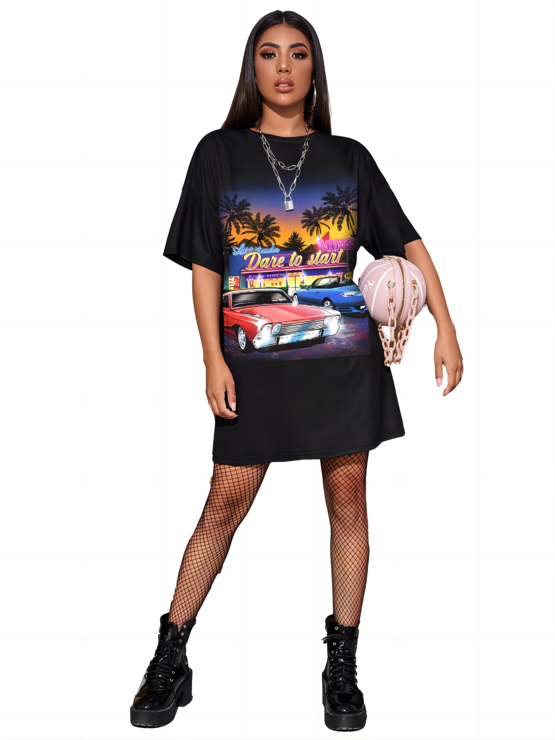- Original – Women's Casual Graphic Print Short Sleeve Loose T Shirt Dress Black L by SOLY HUX