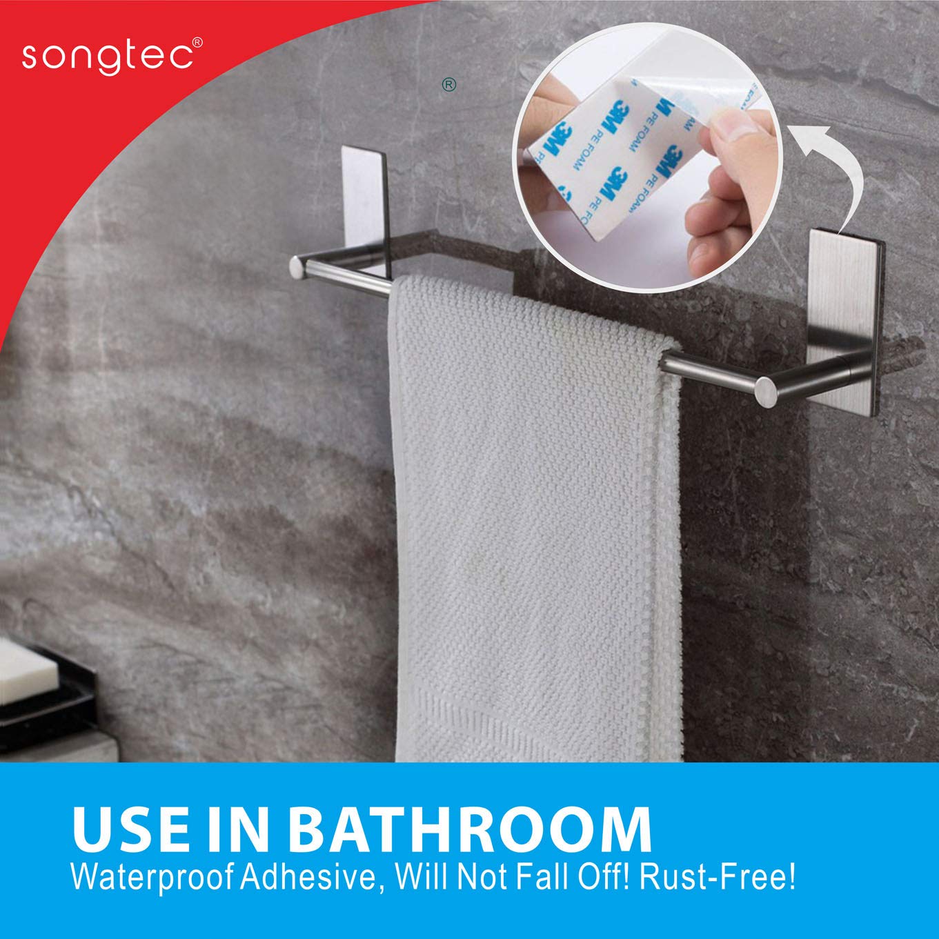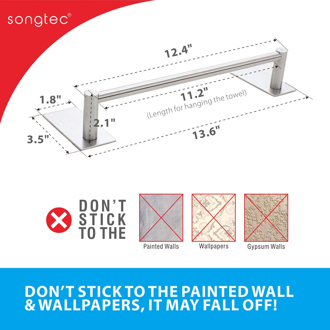 - Original Towel Bars – Adhesive Towel Bar 12inch Brushed, Stick On Bath Towel Rack Easy Install, NO Drilling on Walls, Premium SUS304 Stainless Steel - Brushed by Songtec