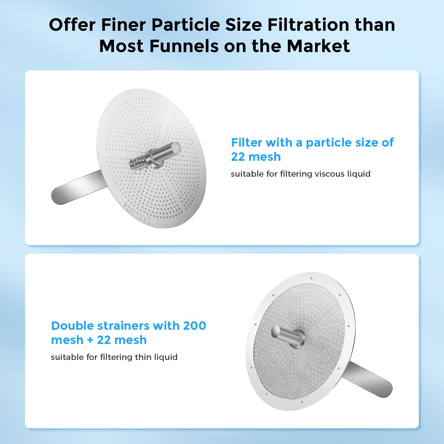 - The strainer are perfectly clean, tight and the mesh is the right size for filtering resin. Thanks to the funnel, the residues can be filtered back clean and suitable for filtering resin.