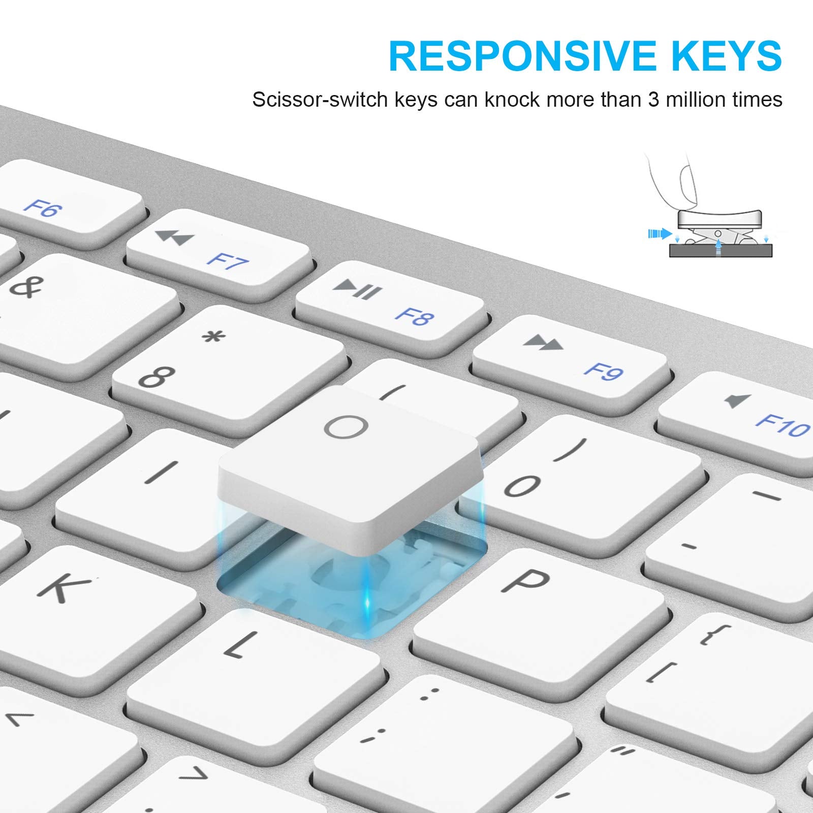 - Nice Design: Scissor feet and chocolate key-caps provide you with comfortable and noiseless typing. “QWERTY” layout with featured function keys including volume, music control, brightness, etc. Compact mouse shape perfectly matches palm usage habits
