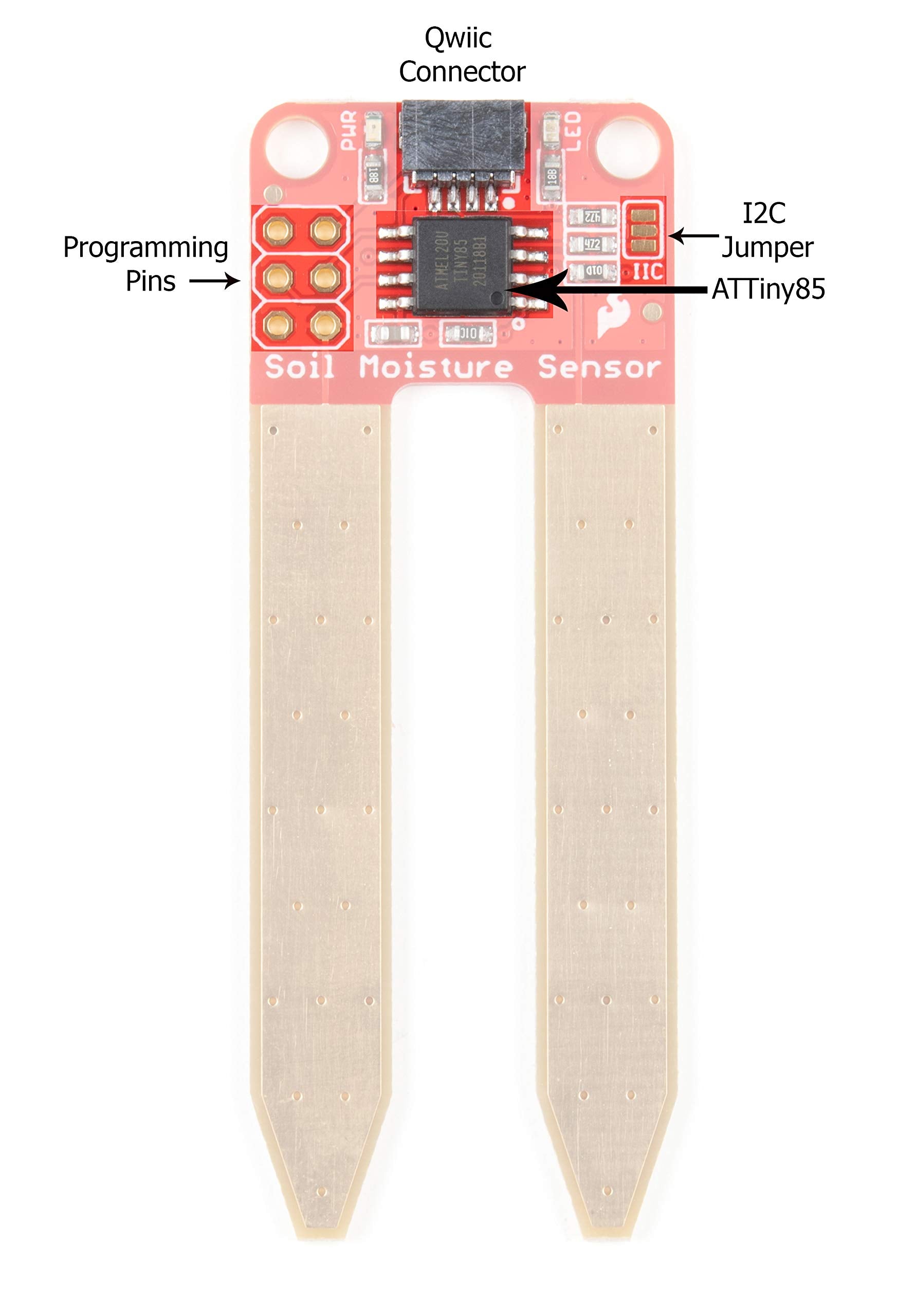 - The SparkFun Qwiic Soil Moisture Sensor is a simple breakout for measuring the moisture in soil and similar materials. This version of the Soil Moisture Sensor includes a Qwiic connector, making it even easier to use this sensor!