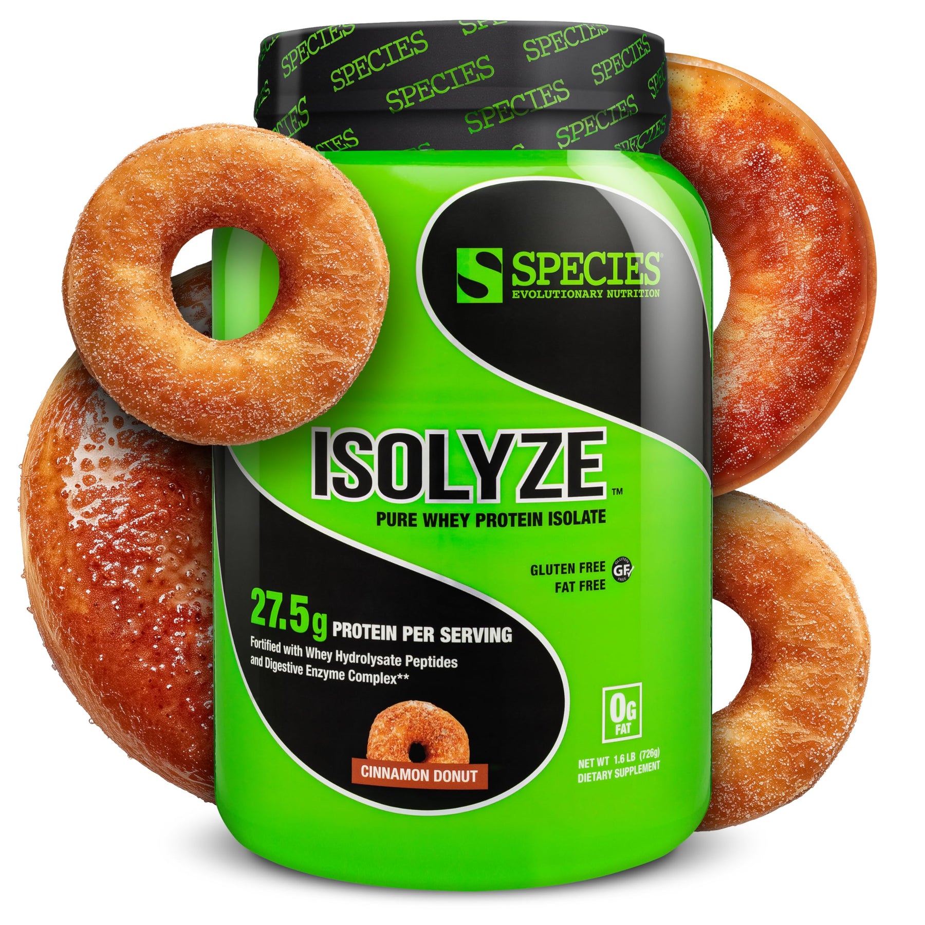 - Original Cinnamon – Isolyze Whey Protein Powder, 100% Whey Isolate Protein, Whey Protein for Muscle Building, 27.5g Protein Per Scoop, No Sugar & Low Fat Protein (Cinnamon Donut, 22 Servings) by Species Nutrition