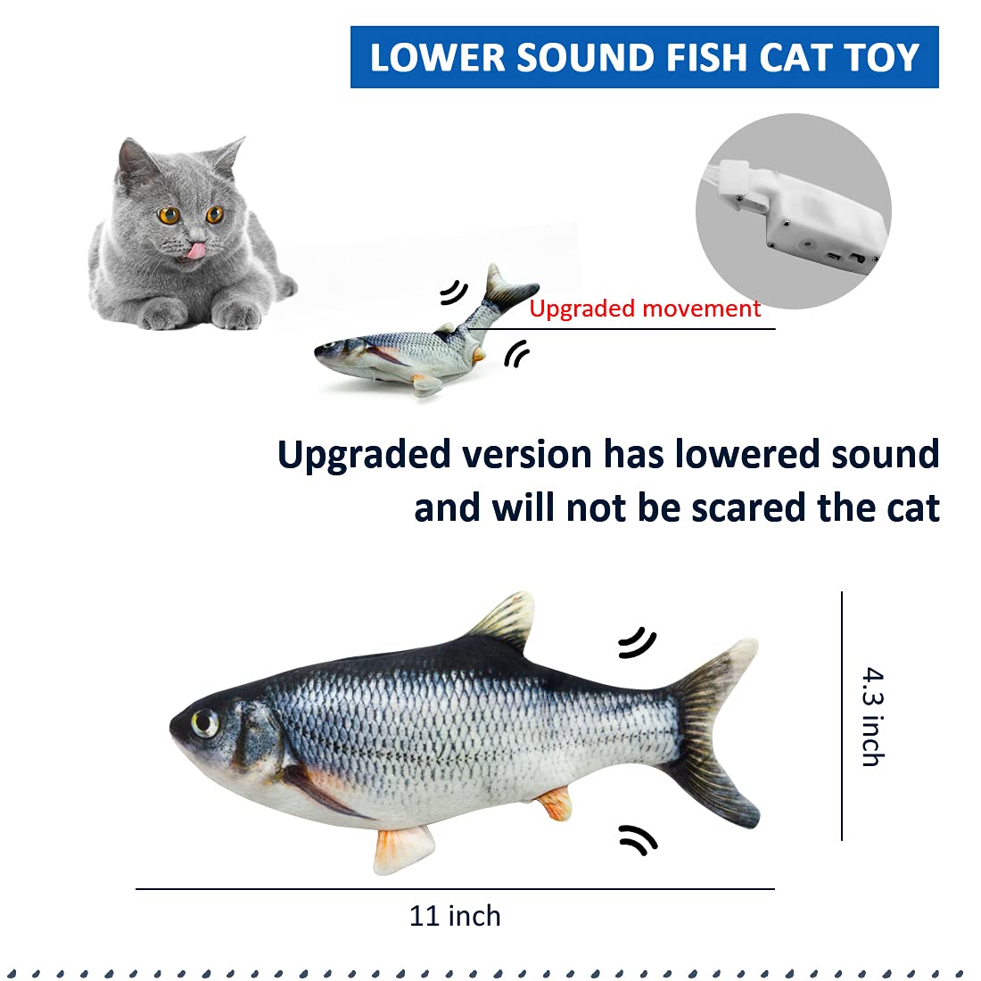 - Upgraded zipper design,bite-resistant,cat protectionThe cat toy electric fish is made of the high-quality plush cloth, and filled with pp cotton. The soft material will not harm the cat ’s claws and teeth,very suitable for cat and dog to chew and kick. The flippity fish cat toy with upgraded zipper design is more long-lasting.When you are at home, the battery fish can better play with cats and enhance your feelings.