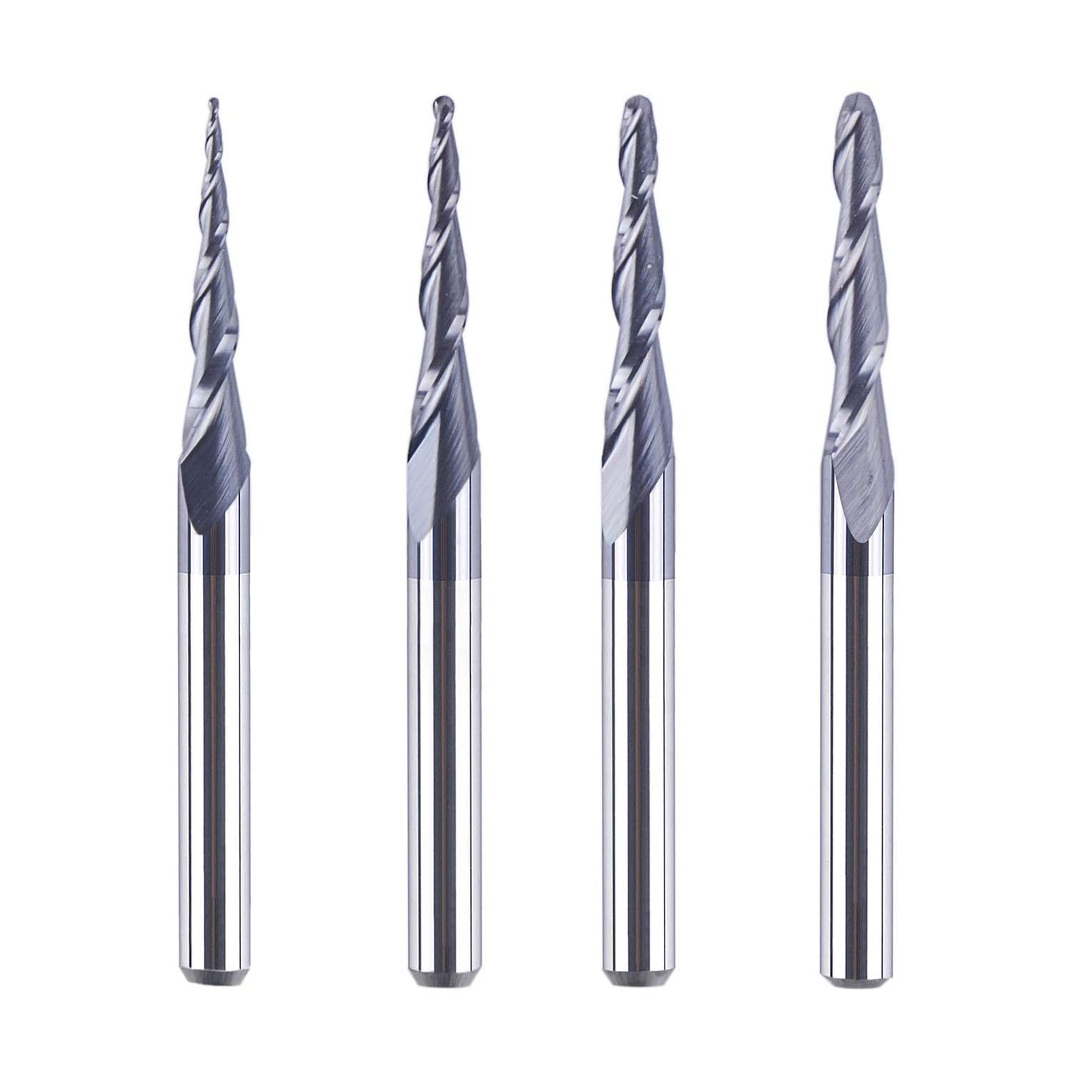 - Original Tapered – 4Pcs/Pack Assorted R0.25~1.0 Tip 1/8 Tapered End Mill Cone Ball Nose Carbide Bit CNC Cutter for Carving Engraving by SpeTool