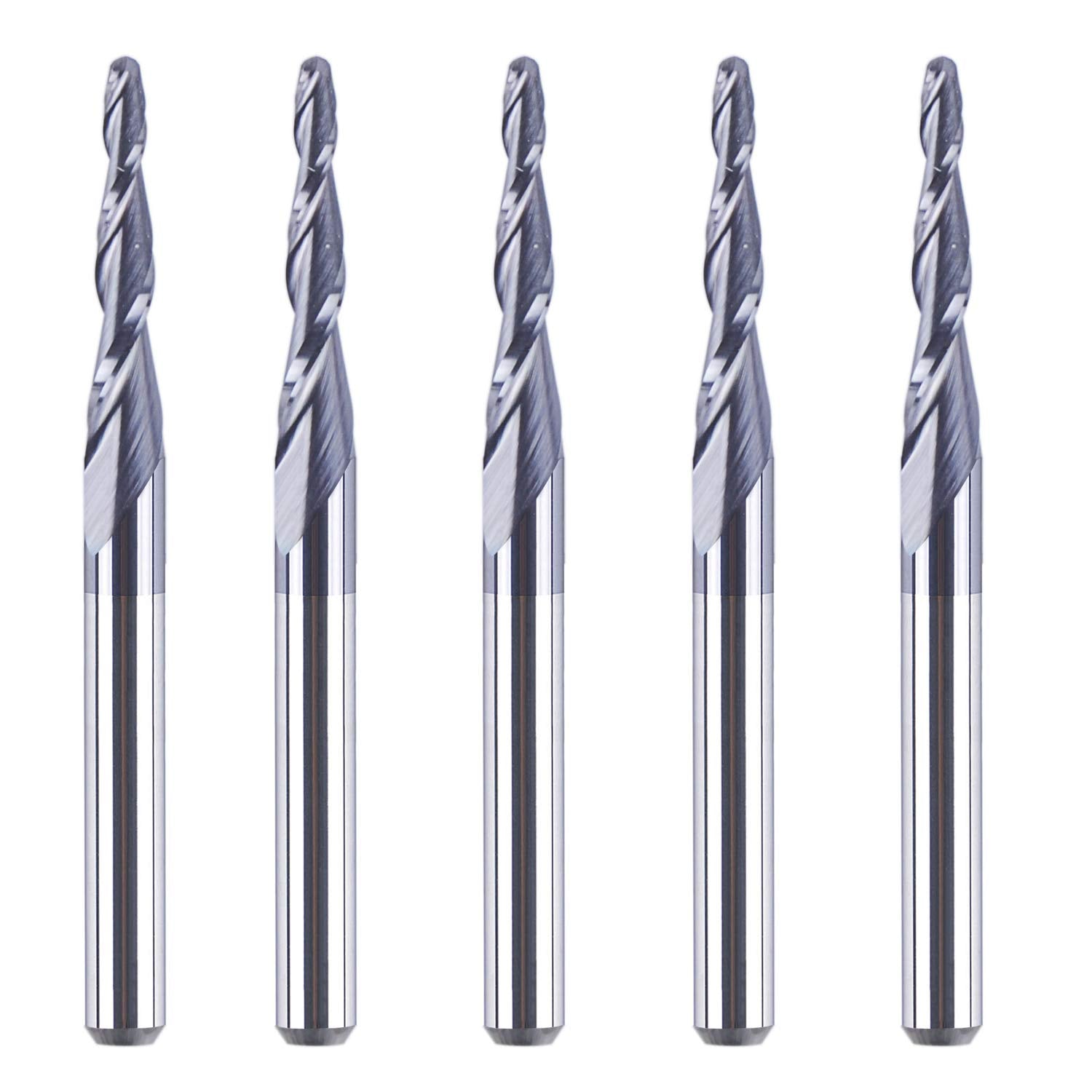 - Original Tapered – 5 Pieces 0.75MM Tip Radius (1.5mm Diameter) Tapered Ball Nose Carbide Router bits 1/8 inch Shank for Wood Carving 3D Engrave with TiAlN Coated by SpeTool