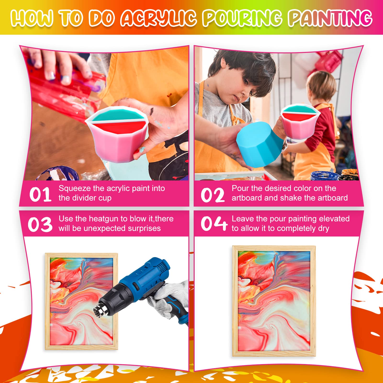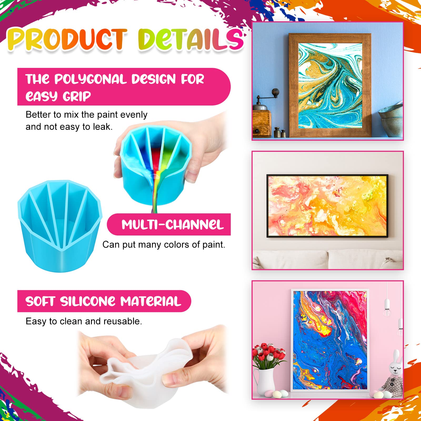 - Original Paints – Split Cup for Paint Pouring 4 Pcs 2 3 4 5 Chambers Reusable Silicone Paint Cup Polygonal Style Pouring Divided Cup for Fluid Art Acrylic Paint Resin Pouring DIY Making, White, Blue by Nuogo
