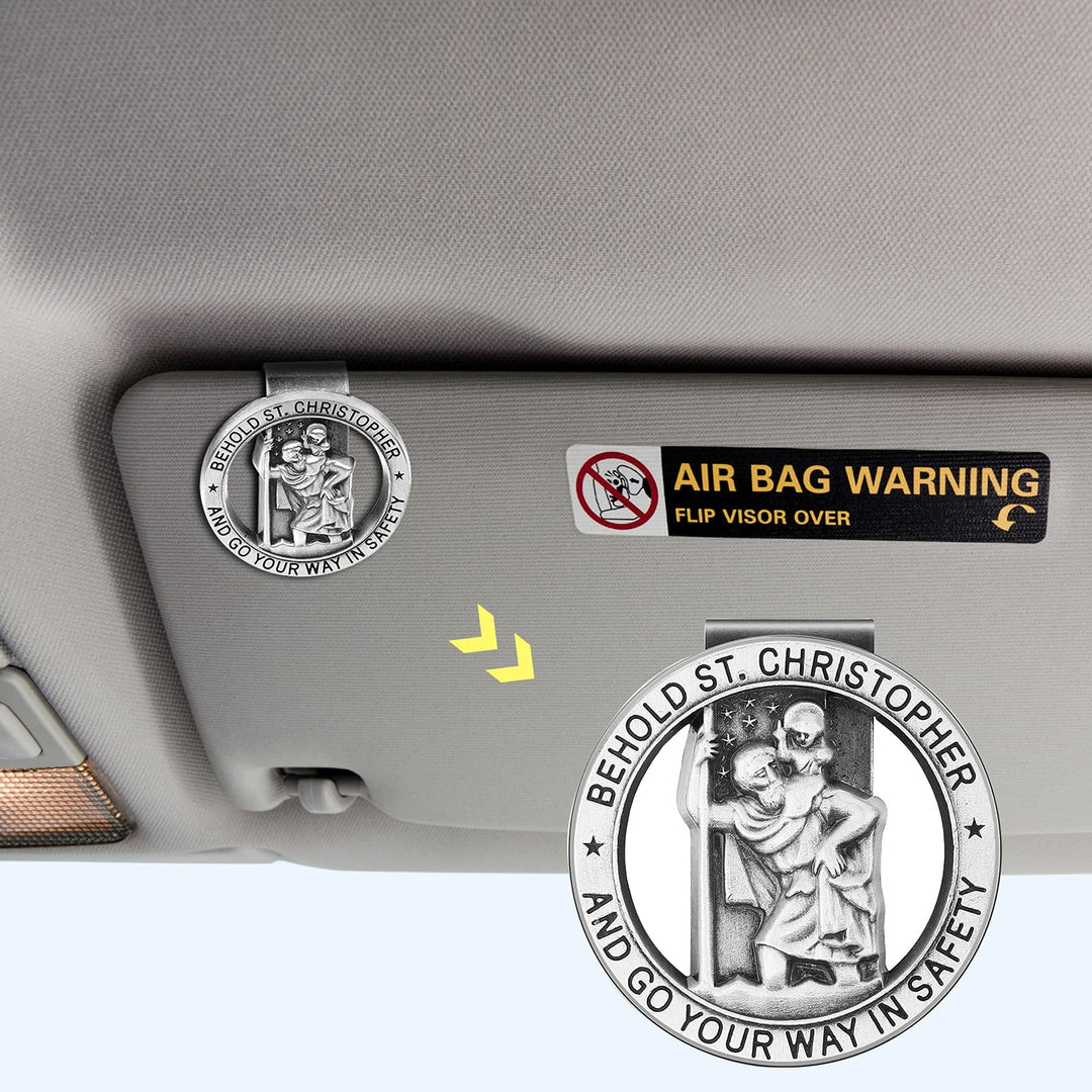 - Original Visor Accessories – St Christopher Medal for Car Silver Saint Christopher Visor Clip Religious Car Medals Go Your Way in Safety Car Visor Clip Auto Sun Visor Accessories for Parent Family Friend (2) by Frienda