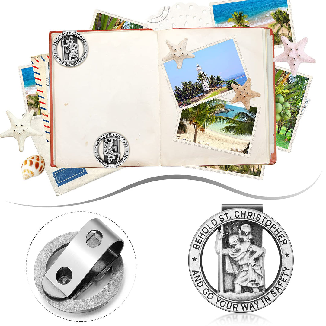 - Easy to use: you only need to slide St Christopher car metal on your sun visor to install them in your car, then you can use them to organize glasses, tickets, stamps, photos and other items on the sun visor, simple and convenient, no complex steps and additional tools needed