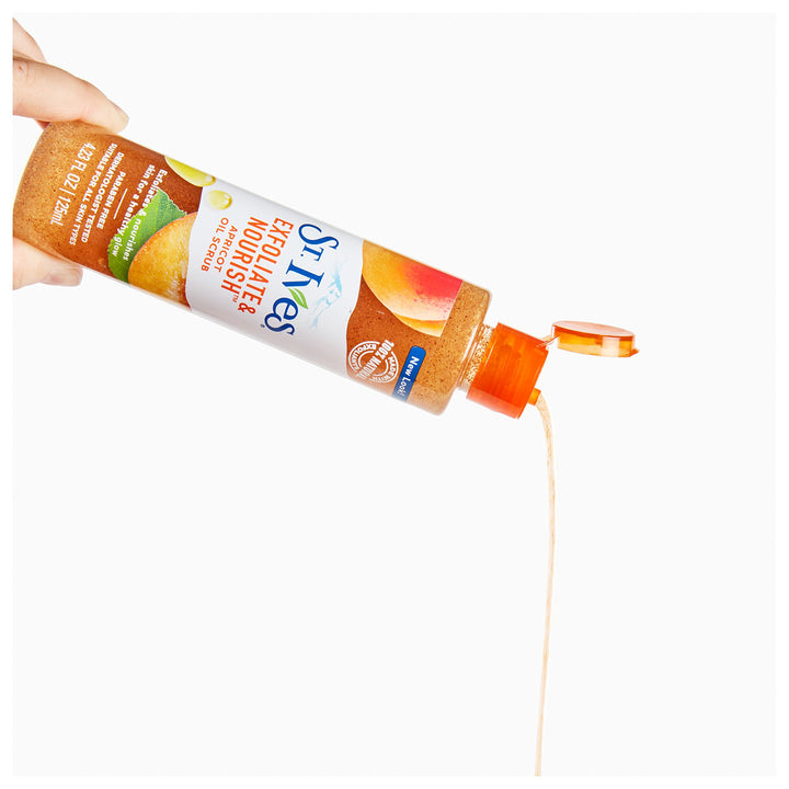 - Our Exfoliate & Nourish Apricot Oil Scrub exfoliates and nourishes by combining the exfoliation of a scrub with the gentle nourishment of an oil for softer skin.