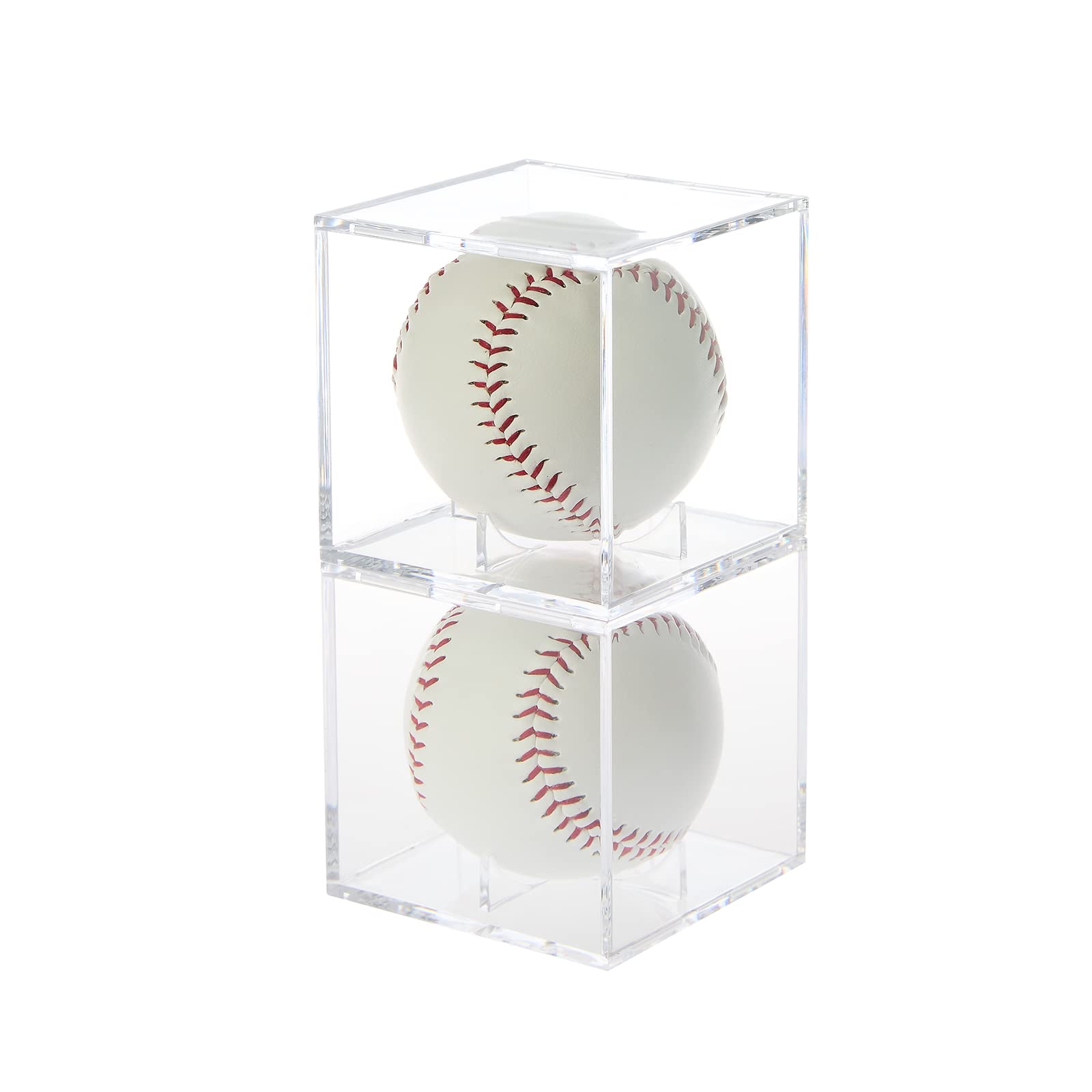 - Original Display Cases – Stackable Baseball Display Case, Acrylic Cube Memorabilia Display Storage Box, UV Protected Baseball Holder for Ball Display - Fits Official Size Ball (2) by LETURE