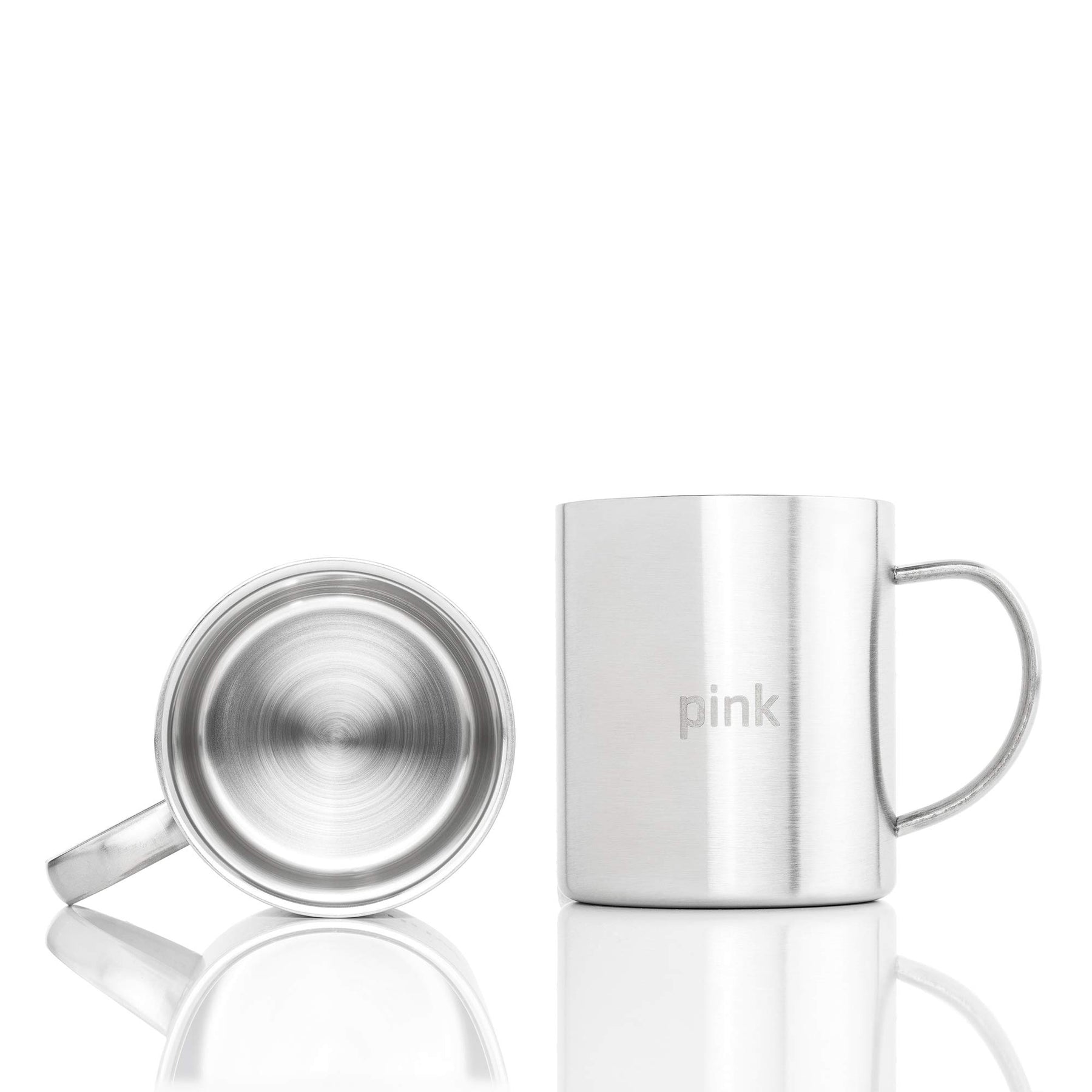 - Original Cups & Mugs – Stainless Steel Coffee Mugs - Premium Wider Handle 'BLUE' & 'PINK' Laser Engraved Coffee Cups - Perfect for the Home Camping RV 13.5 oz Shatterproof Dishwasher Safe (Set of 2) by Better For Your