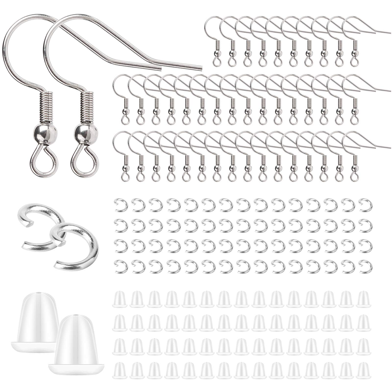 - GREAT VALUE KIT: 200pcs stainless steel earring hooks, 200pcs stainless steel jump ring and 200pcs clear silicone earring backs.