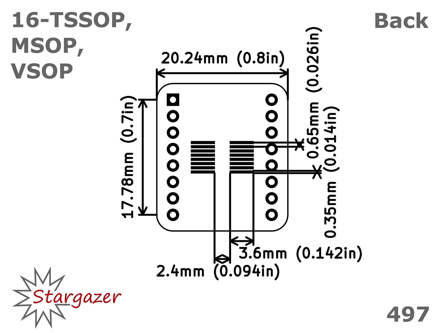 - Back Side of PCB: TSSOP-16, MSOP-16, VSOP-16 (0.65mm Pitch) SMD to DIP Breakout