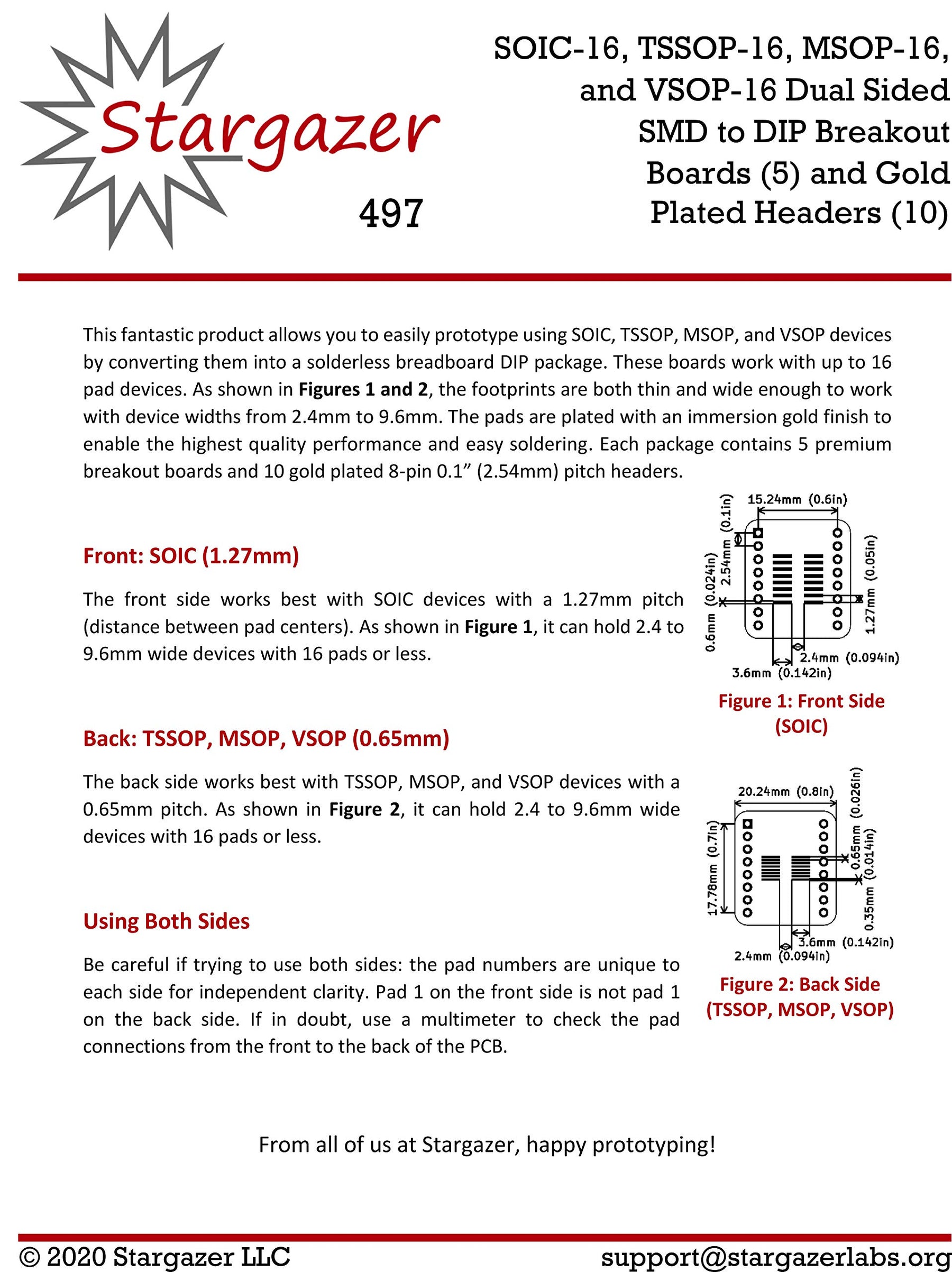 - Original Prototyping Boards & Accessories – Stargazer SMD to DIP Breakout for SOIC-16, TSSOP-16, MSOP-16, and VSOP-16 with Gold Plated Headers [5 Pack] by Stargazer Enterprises