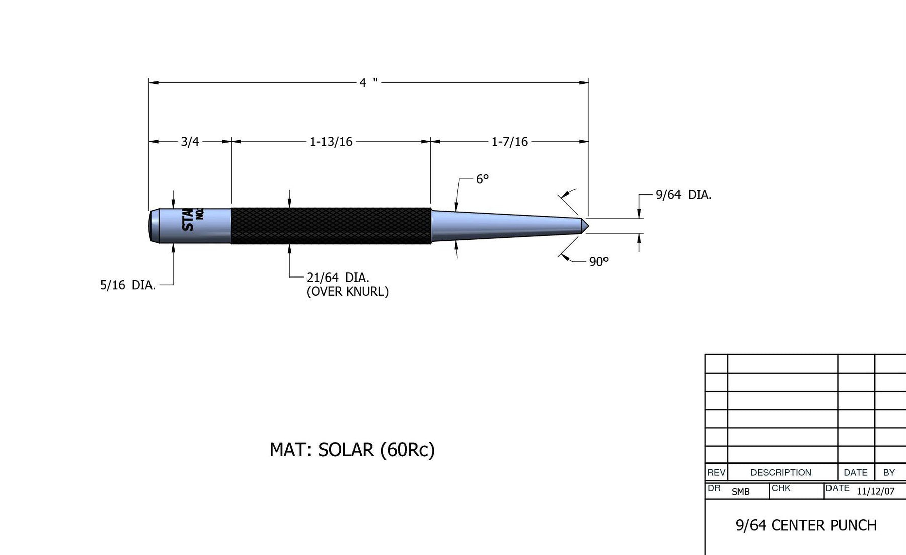 - Original Center Punches – Steel Center Punch with Round Shank and Knurled Finger Grip - Hardened and Tempered, 4 (100mm) Length, 1/8 (3mm) Diameter Tapered Point by Starrett