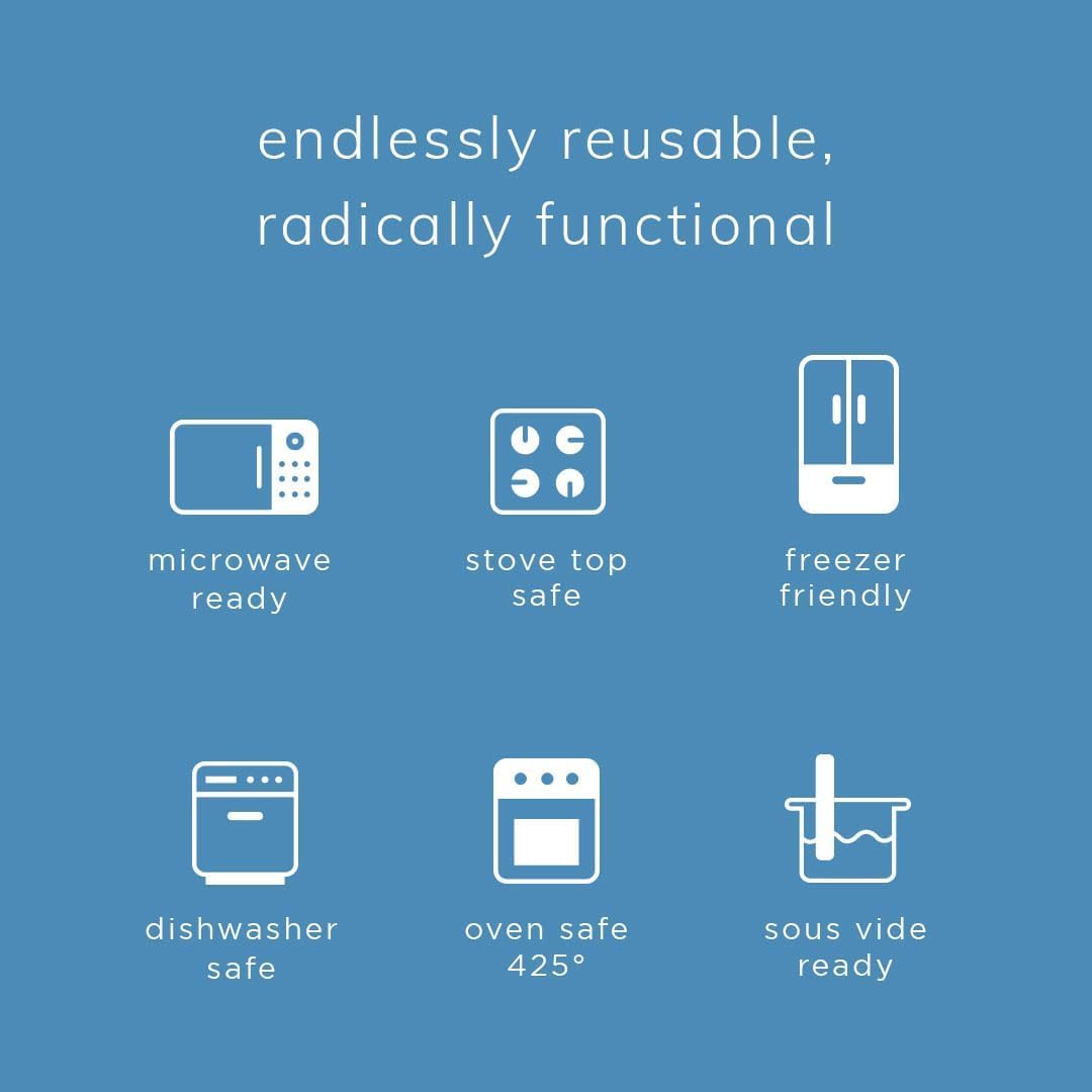 - REUSABLE, REWASHABLE CONTAINERS: Stasher silicone reusable storage bags make it easy to ditch single-use plastic and meet endless household needs. Safe for the dishwasher, microwave, oven (up to 425°F), and more.