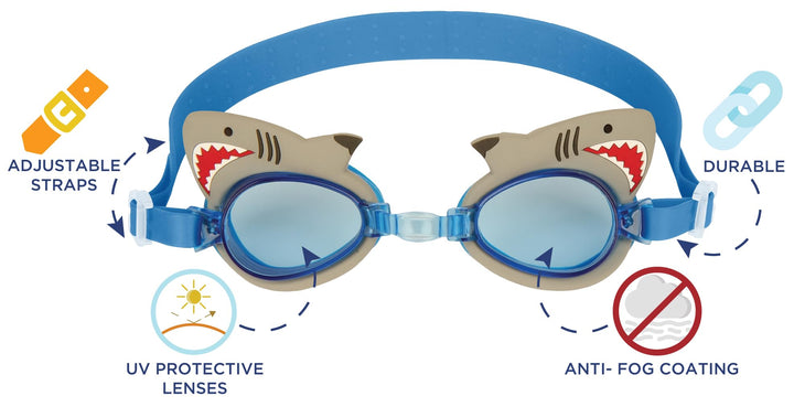 - SPECIAL FEATURES: Adjustable straps, silicone eye cups, & anti-fog lenses help kids swim in style in gear that fits them well. 3-D character lens pieces add an extra touch of fun to every pair!