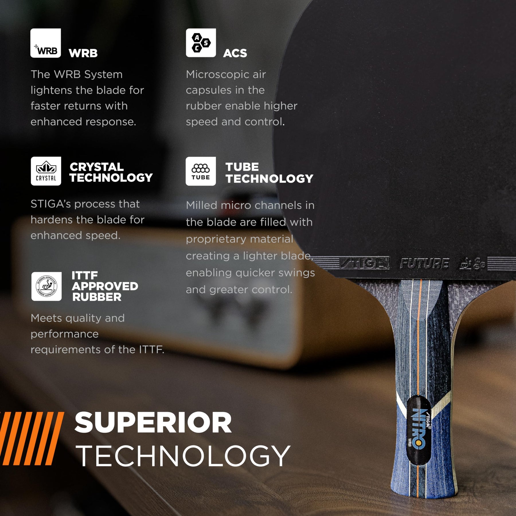 - Original Rackets – STIGA Nitro Performance Ping Pong Paddle - 6-ply Light Blade - 2mm Premium Sponge – Flared Handle for Exceptional Grip - Performance Table Tennis Racket for Serious Play by Stiga