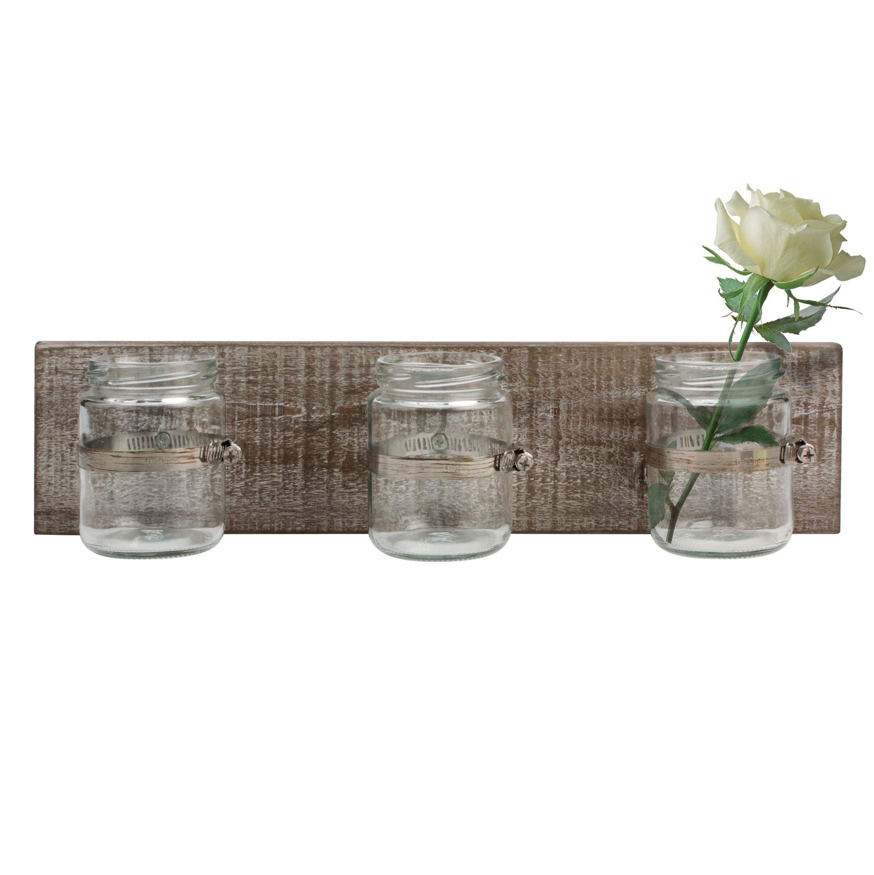 - Original Decorative Jars – Rustic Industrial White Wash Wood Hanging Wall Decor with 3 Glass Jar Containers, Clear by Stonebriar