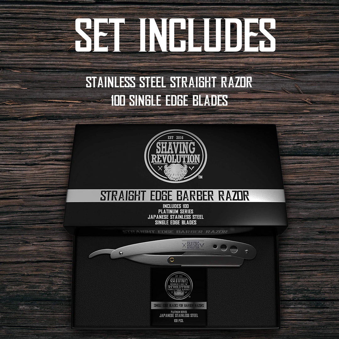 - Original Straight Razors – Straight Edge Barber Razor for Close Shaving - Professional Straight Blade Razor for Men with 100 Single Edge Blades- Mens Straight Razor Kit by SHAVING REVOLUTION